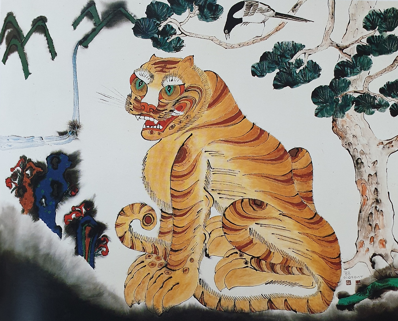 <호작도/우담이영수/종이에 수묵담채및채색 그리고 석채 >