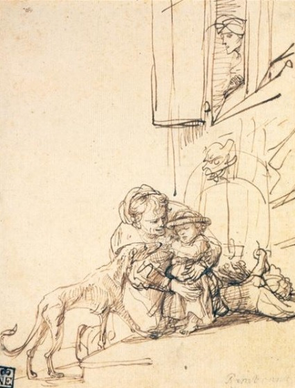<개에게 겁먹은 여자/램브란트/1636/18x15cm/종이에스케치>