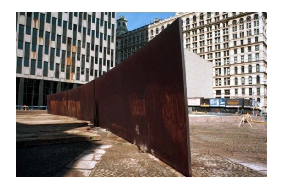 리처드 세라는 미국태생의 조각가로 그의 대표작이 바로 <기울어진 호/철/1981>이다. 그는 거대한 철판 조각을 베를린 시청 앞에 일부러 설치를 하였다. 넓은 광장은 작품으로 인해 공간이 분리됐으며 사람들은 이 작품 즉 철판 때문에 늘 가로지르던 길을 돌아가는 불편을 겪어야 했다. 그는 시청관계자와 협의 후 십 년 가까이 이 설치작품을 두며 사람들의 움직임을 관찰했다. 쉽게 갈 수 있는 길을 돌아가야 하는 것과 광장의 공간분리와 단절로 인해 사람들의 항의는 빗발쳤고 결국 1989년 작품을 철거하였다. 여기서 우리가 놓쳐서는 안 되는 것이 있다. 바로 소통이다. 우리는 마음에 빗장을 치고 상대를 대할 때 소통이 되지 않는다. 단절로부터 자유롭고 유연해야만 함께라는 것이 가능하며 작품이 철거된 후 시청광장이 온전히 넓은 공간으로 탈바꿈되어 여유?를 갖게 되는 것처럼 마음의 빗장을 걷어 내야만 진정한 소통이 된다는 것이다. 또한 아무리 작품이라고 해도 대중에게 불편을 초래하는 것은 화이트 큐브 속에 전시된 수많은 현대미술 속 작품이 갖고 있는 난해함을 지적하는 것이기도 하다.
