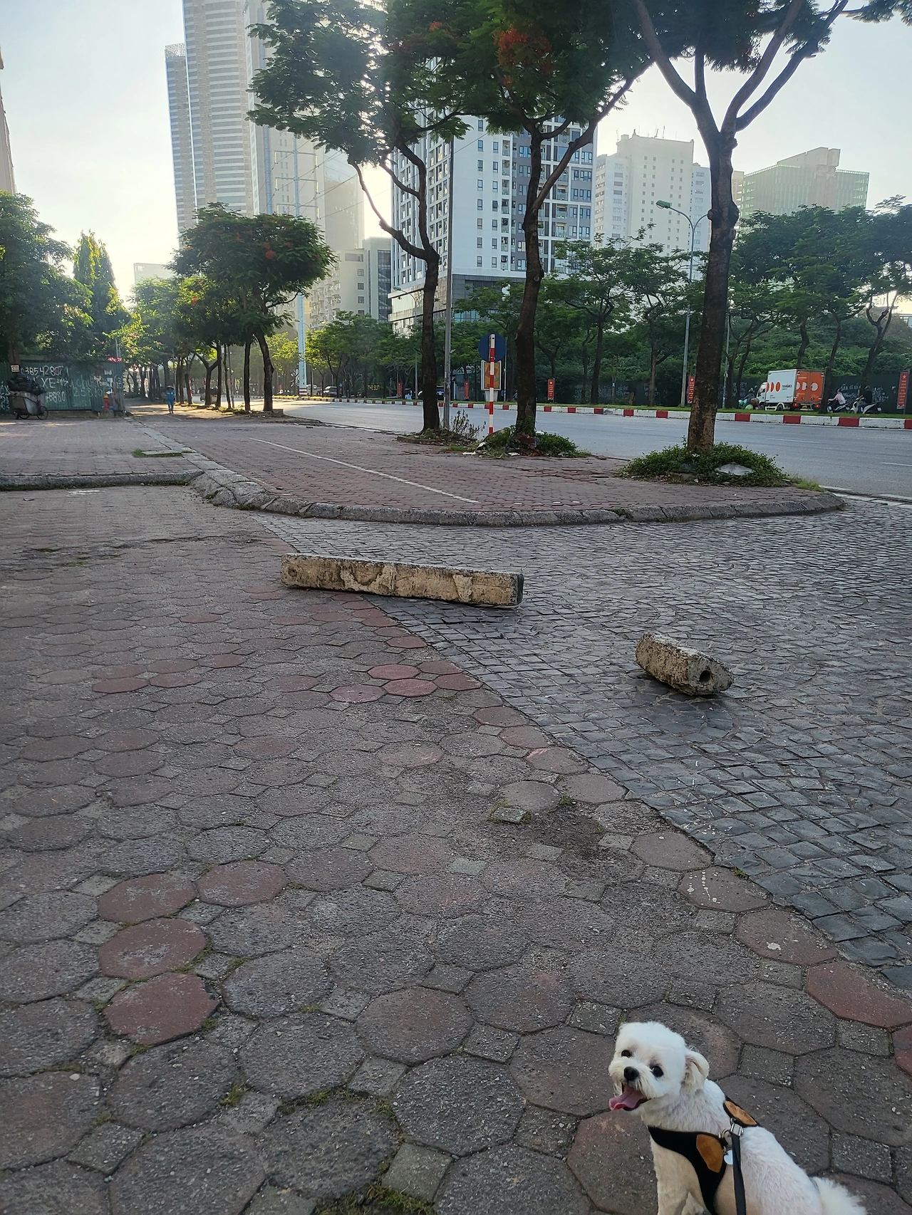 오늘 아침 산책은 조금 늦었다. 7시쯤 거리 풍경은 이미 운동을 마치고 떠나는 사람들과 벌써 뜨거워진 햇살에 땀이 흐를 정도였다. 감자가 걷지를 않는다. 가로수밑 풀 속에는 들어가면서 거리에선 안아달라고 보채는 것이다. 좀처럼 하지 않는 행동으로 오늘은 산책을 시작하기도 전에 진땀이 흘렀다. 이럴땐 나라도 운동을 해야지 하는 맘으로 40여분 정도 감자를 안고 파워워킹을 하고 돌아왔다. 뭐 딱히 한 것도 없는 감자는 집엘 들어서자 물을 달란다. 감자는 한 번 마신 물은 잘 마시질 않는다. 누가 공주 아니랄까 봐서. 냉장고에서 시원한 생수를 따라주자 벌컥대며 먹는 모습을 보며 나는 한 마디 했다. “넌 누구 딸인데 이리도 이기적인 게냐? 대답을 해 봐” 발을 씻기고 나자마자 한국에서 계속 연락이 왔다. 베트남 전화 칩으로 바꿨기 때문에 현재 한국 전화는 먹통이다. 아침부터 바빴다.