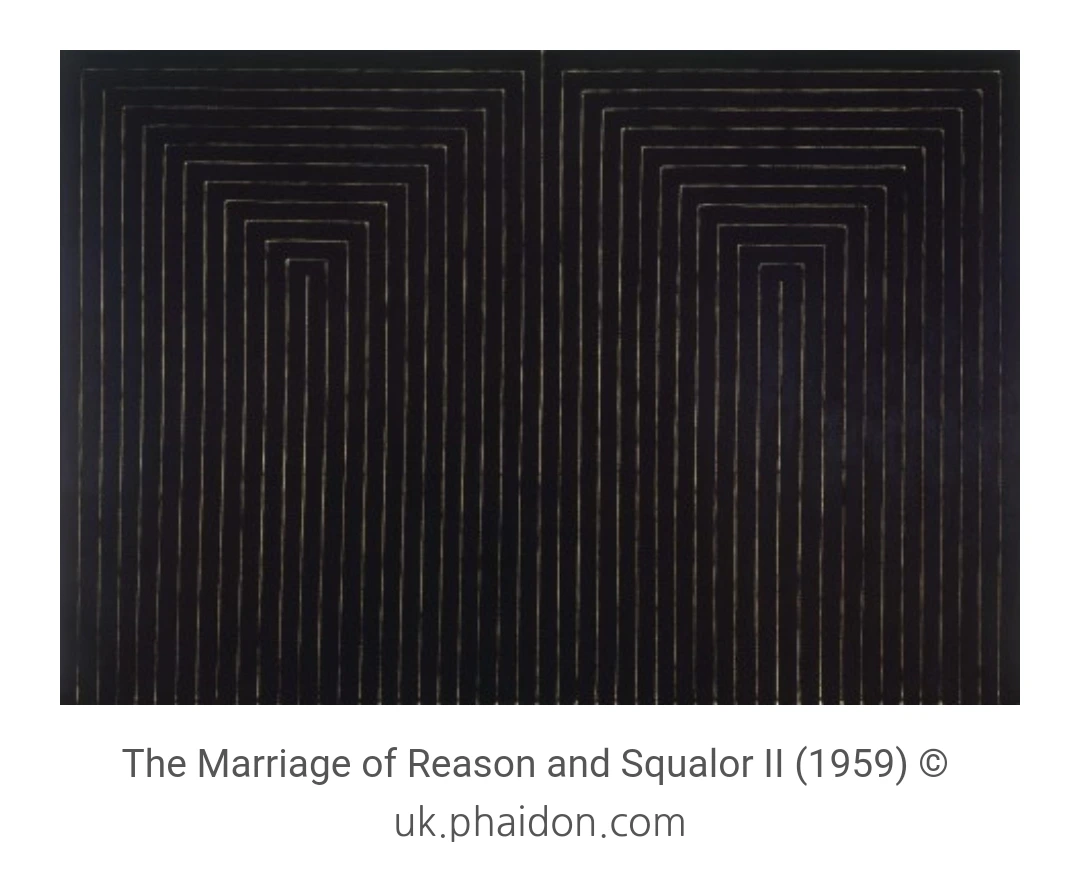 스텔라는 'What you're looking at is what you're looking at! 당신이 보고 있는 것이 지금 보는 것'이라는 말을 남겼다. 현재가 중요하며 보고 있는 것이 전부일 것이라는 오류에 대한 지적이며 또한 인간은 유한한 존재라는 뜻을 담고 있다. 그러나 이형곤은 "누군가가 기억하는 한 누군가는 영원히 살아 있다"라는 말처럼 스텔라의 유한성보다는 무한성과 영속성을 보여준다. 특히 옻이라는 중요재료를 사용하므로 그 부분에서는 더 강력한 메시지를 전달한다. 또한 작품의 가운데 자리한 굵은 선은 미련과 무모함 때문에 놓지 못하는 많은 것들에게 다시 시작할 수 있으니 돌아보지 말고 그 자리에서 멈추라는 신호이며, 시작했던 것들이 고된 과정에 대한 결과를 보여주는 마침표라는 느낌을 준다. 이런 면에서 스텔라의 작품과는 차이가 있다.