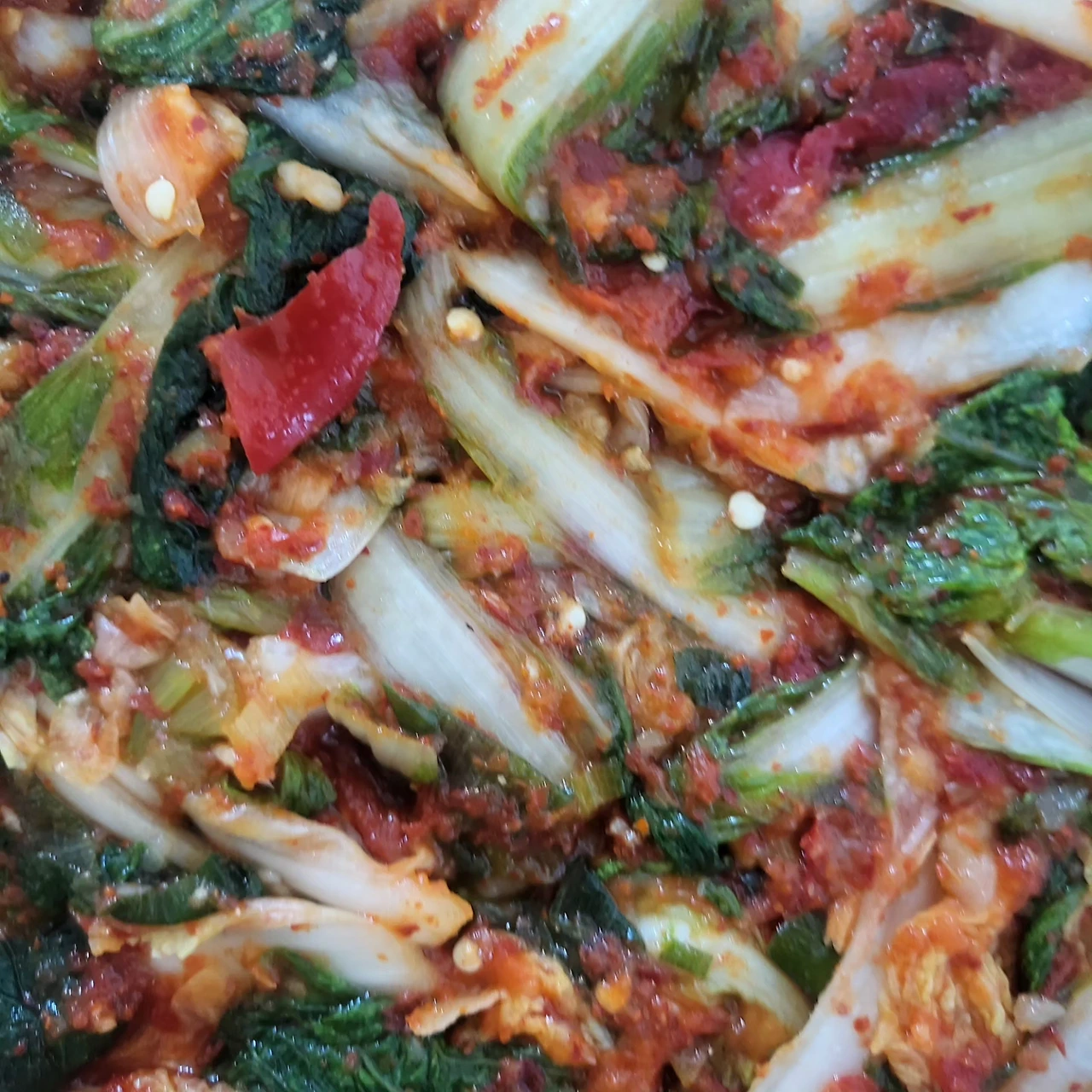 나의 첫 얼갈이 김치. 삶은 감자와 빨간고추룬 갈아 넣었다. 아빠가 좋아하실 줄 알았다. 맛이 안들어서인가?