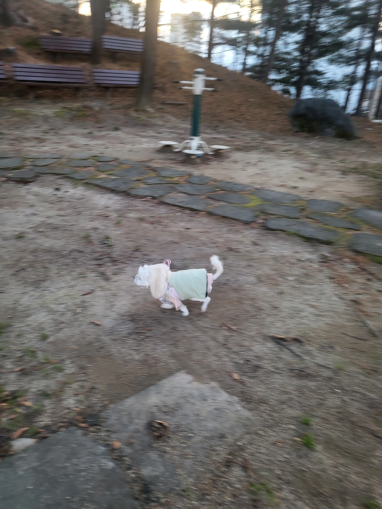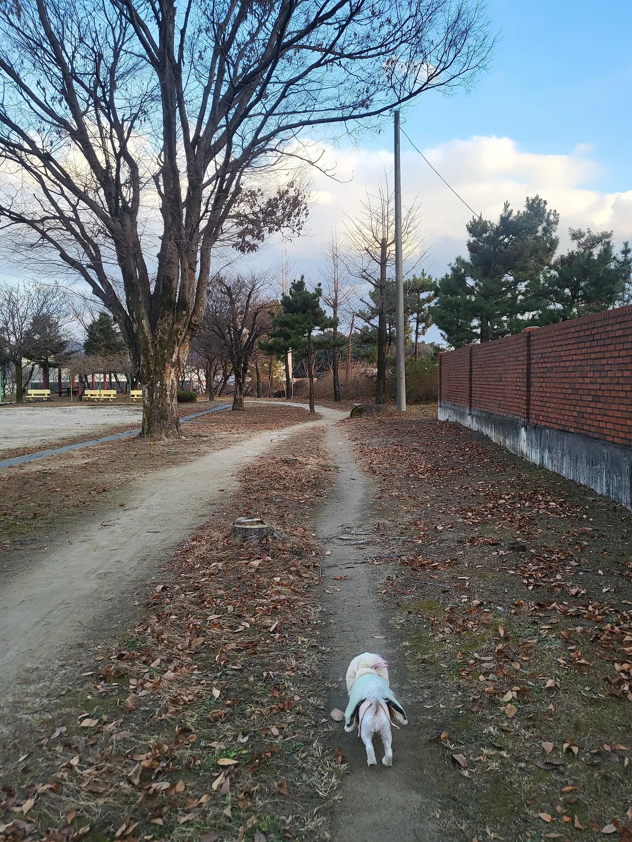 대충 겉옷을 꺼내 입고 감자와 집을 나선 김에 감자가 한 달에 한 번 꼭 복용하고 있는 넥스가드 스펙트라(심장사장충 기타 등등 예방약)를 받기 위해 병원에 들러 돌아오는 길 집 옆에 위치한 학교의 운동장을 두 바퀴 실컷 토끼처럼 뛰는 감자를 바라보며 엄마는 너무 춥다~~
