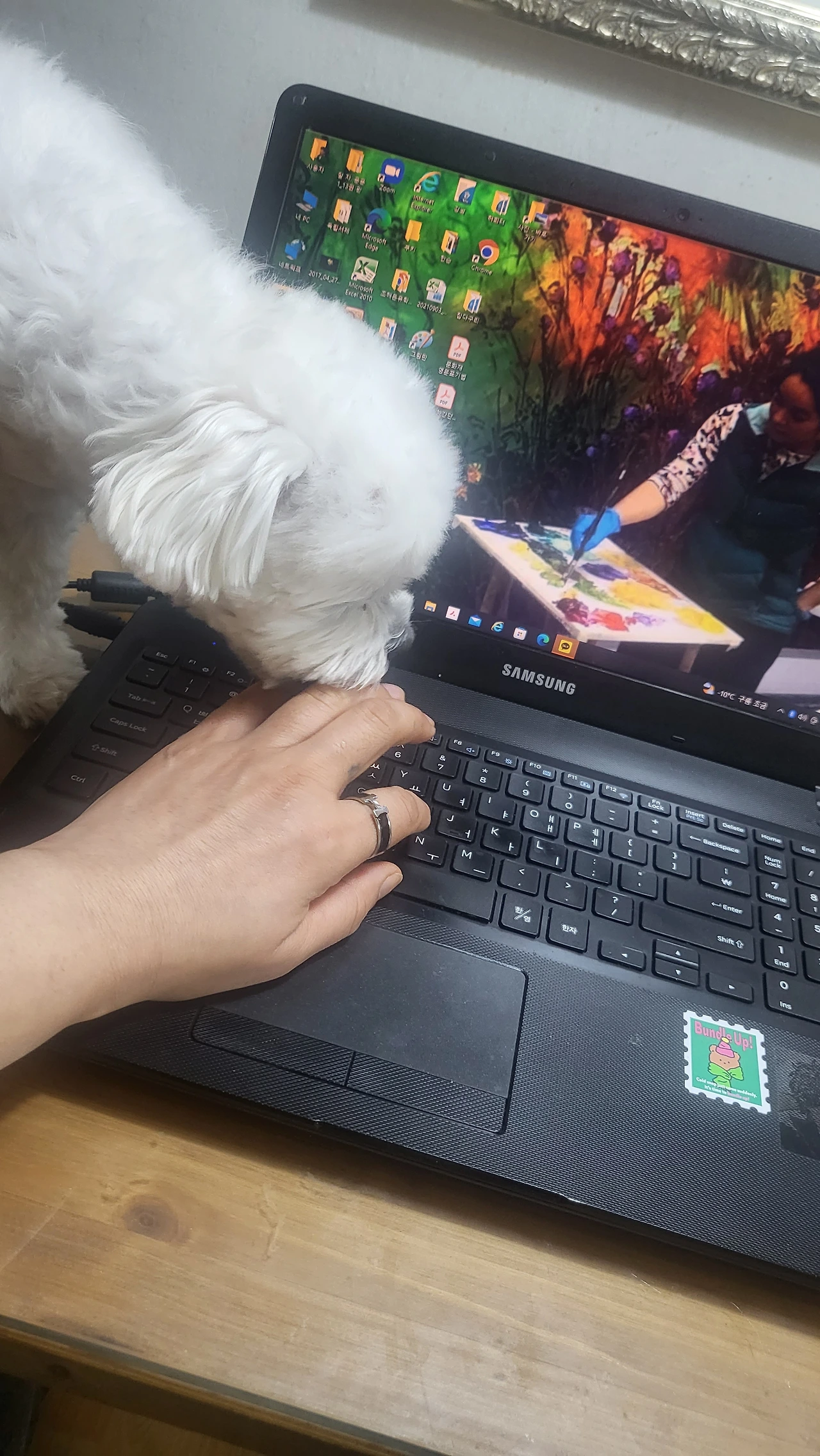 일을 해야 하는데 갑자기 껌딱지가 되어 방해공작중인 내 사랑~~