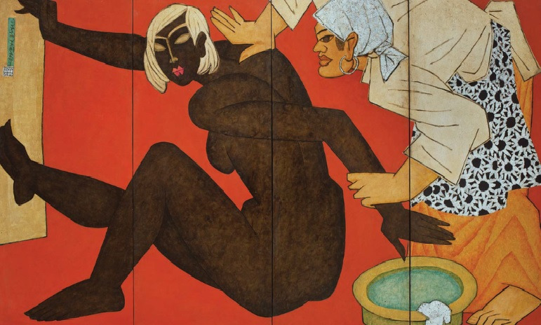 The Stepchild, Phùng Phẩm, 140x240cm, Lacquer on Wood, 2005, 탕롱갤러리 하노이.