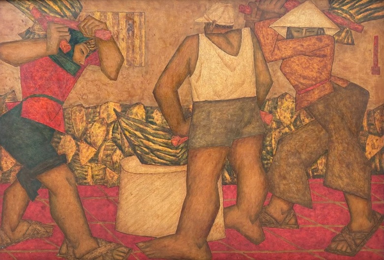 Threshing Wheat On the Werehouse Yard 2. Phùng Phẩm, 122x163cm, Lacquer on Wood, 2007, 탕롱갤러리 하노이