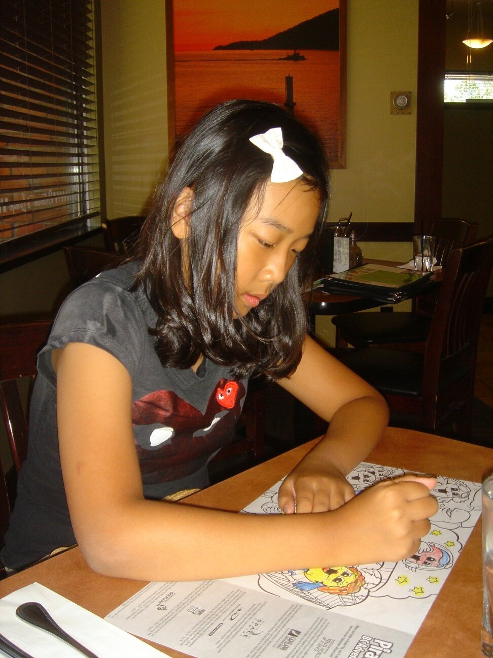 한 때 한국의 학교에 적응을 못해 자퇴라는 말이 입에 붙어있던 딸. 딸의 점심시간에 전화벨이 울리면 괜히 심장이 철컹했던 날들이 있었다. 딸은 한글을 5살 나이에 혼자 깨우치고 책을 읽기 시작하였다. Bed story time을 내가 어길시에는 끝까지 잠들지 않을 때도 있었고, 너무도 조용해 그녀의 방문을 살며시 열면 침대 한귀퉁이에 커다란 박스를 가져다 두고 그 속에서 책을 읽고 있곤 했다. 초1때 비가 오는 어느 날 외투를 입고 오지 않아 물어봤더니 "응 저기 교실 앞에 차가 비를 맞고 있어서 내가 불쌍해서 차를 덮어주고 왔어" 또는 책가방이 없이 집에 돌아오는 날도 있었다."엄마 집에 오는 길에 가방이 너무 무거워서 저기다가 버리고 왔어"