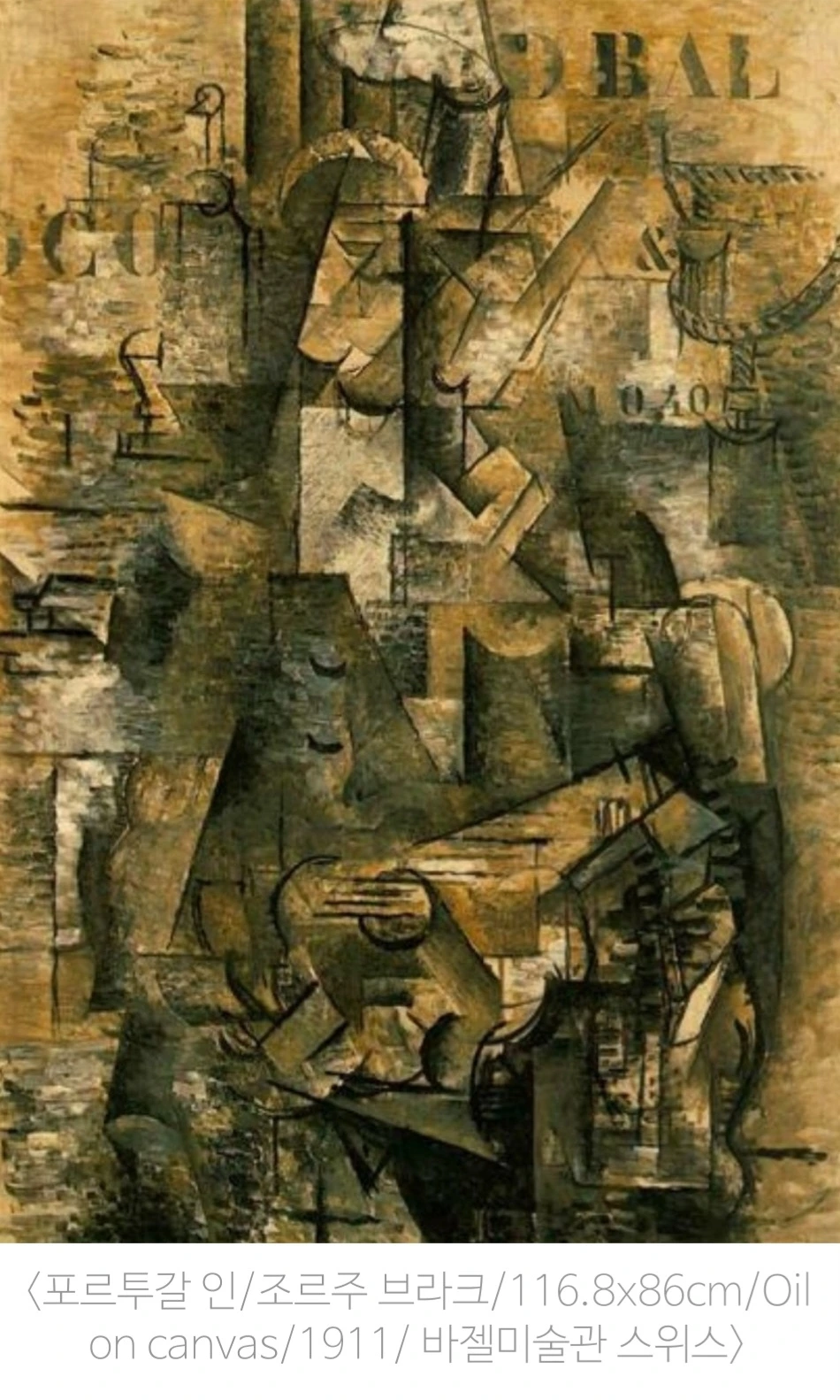 브라크의 대표작 중 하나인 <포르투갈인 1911년작>은 눈에 보이는 것을 단순히 평면에 담은 것이 아니라, 보이지 않는 사물의 여러 면을 동시에 표현하려 한 작품이다. 인물의 얼굴과 몸의 일부가 화면 곳곳에 분산되어 있어 구체적인 형상을 찾기 쉽지 않지만, 전체적으로는 리듬감 있는 움직임과 구조적인 아름다움이 느껴진다. 큐비즘은 그 분석적이고 수학적인 특성 탓에 감성적으로는 다소 멀게 느껴질 수 있다. 그러나 조금만 들여다보면 그 안에는 시각적인 재미와 깊은 의미가 숨어 있어, 오히려 가장 흥미로운 회화 장르 중 하나임을 알 수 있다. 그러나 조금만 들여다보면 캔버스 안에는 시각적인 재미와 깊은 의미가 숨어 있어, 오히려 가장 흥미로운 회화 장르 중 하나임을 알 수 있다.세계대전 이후, 브라크는 정물화에 주력하기 시작했다. 그는 사물을 조각내어 분석적으로 바라보는 시선을 유지하면서도, 노년기에는 보다 단순하고 강렬한 색채로 인간적인 따뜻함을 담아냈다. 이 점에서 그는 피카소와 뚜렷한 차이를 보인다. 피카소가 정치적이고 사회적인 메시지를 담는 데 집중했다면, 브라크는 보다 내면적이고 시적인 화풍을 유지했다. 종합적 큐비즘을 대표하는 콜라주 기법도, 사실은 브라크가 먼저 아이디어를 제시했지만 피카소가 이를 실현해 대중에 선보였다. 물론 피카소의 천재성은 분명하지만, 그의 세속적인 면모는 개인적으로 아쉽게 느껴진다. 브라크의 작품은 피카소에 비해 더 부드럽고, 색조와 선이 유려하다. 이는 그가 세상과 인간에 대해 따뜻한 시선을 가지고 있었음을 보여 준다.