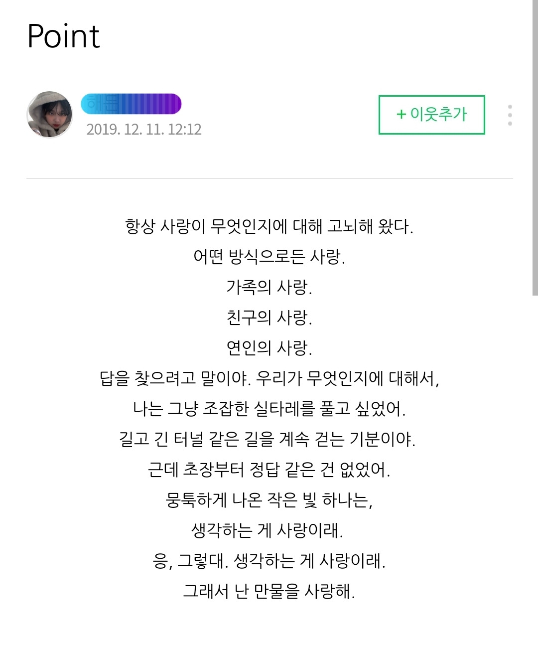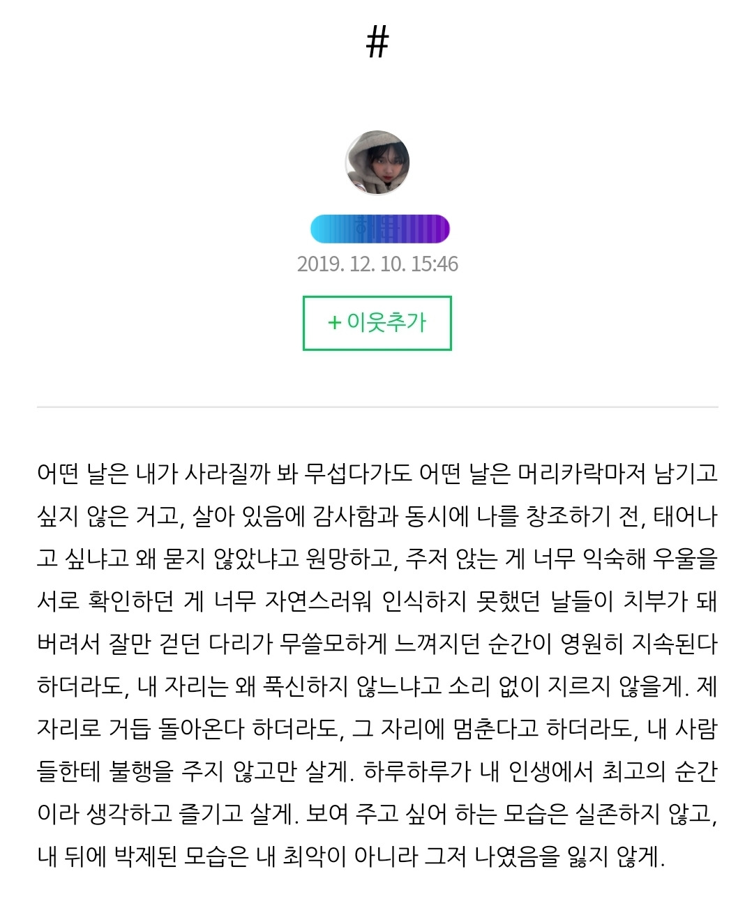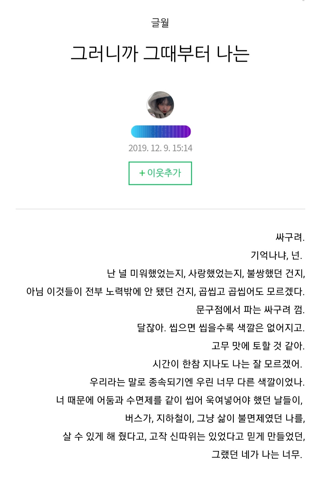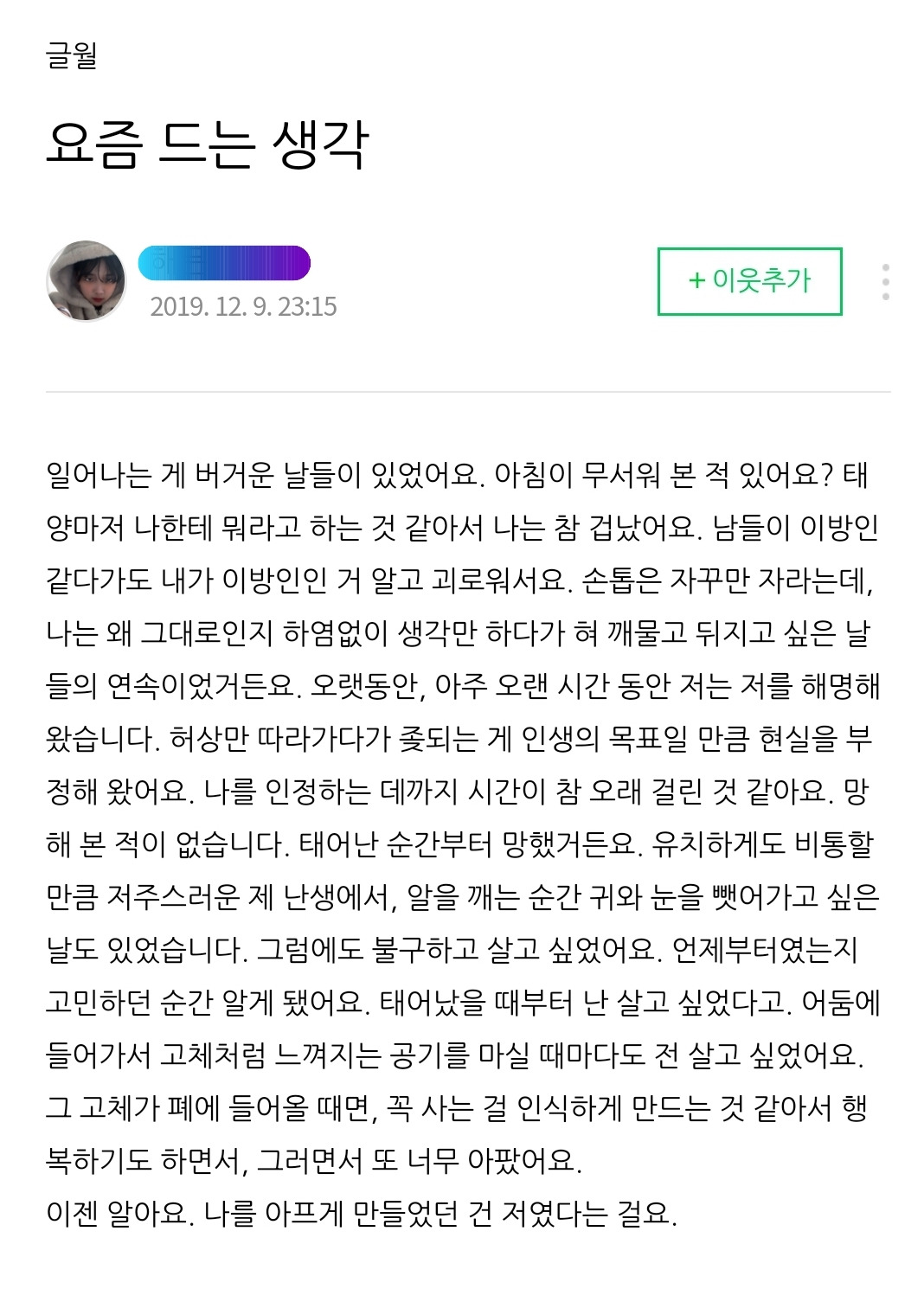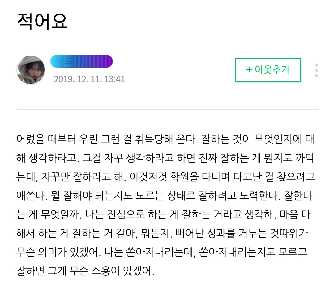 딸의 일기장을 오늘에야 읽어봤어요. 솔직히 일기장이 아닌 블러그. 읽으며 자꾸 가슴이 아파오더라구요. 왜인지는 모르겠어요.