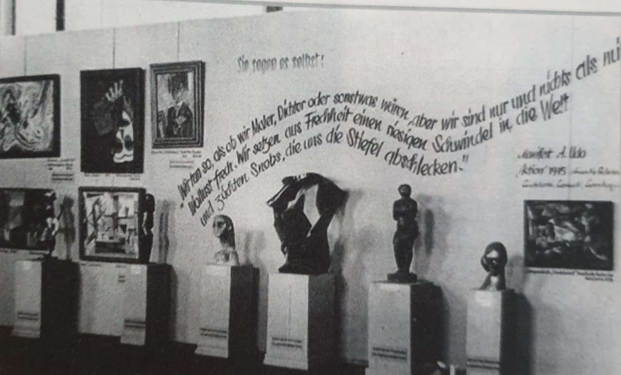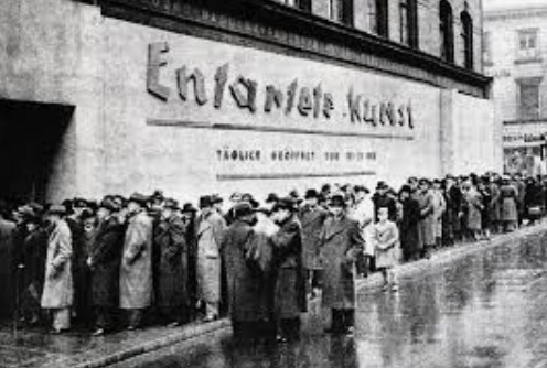 히틀러가 독일의 정권을 잡은 후부터 나치당의 선전부장이었던 괴뵐스(J. Gobbels)가 주축이 되어 문학을 시작으로 문화 예술분야에 전체 검열이 들어가기 시작하였다. 이후 미술계에도 이러한 영향을 받게 되며 자신들의 이념과 맞지 않는다는 이유로 베를린이나 뮌헨의 미술대학 교수와 예술가들을 추방하거나 해임하였으며 그들의 저서는 모두 불태워져 버렸다. 그리고 공공 미술관에 소장된 현대미술 작품들은 대거 몰수되었다. 이것이 바로 나치당이 추구하였던 독일 미술 검열의 시작이다. 이후 히틀러는 1937년 국가사회주의의 독일은 '독일 미술'을 원한다고 강조하면서 서양 문화의 뿌리인 고대 그리스 미술을 가장 순수한 미술의 모범으로 보았고, 중세 독일의 정신세계를 하나의 이상으로 간주하였다. 이러한 나치당은 자신들의 입맛에 맞는 그림만을 최고의 그림으로 인정하였으며, 개인의 사상과 이념이나 철학이 들어간 작품은 모두 '퇴폐 미술'로 간주하였다. 퇴폐 미술가 속에는 우리가 많이 알고 있는 '키르히너', '에밀 놀데', '뒤러', '칸딘스키', '파울 클레', '고흐', '샤갈', '마티스', '피카소'등의 수많은 세계 거장들이 포함되어 있었다. 나치는 퇴폐 미술을 비판하며 자신들이 지향하는 독일 미술의 순수주의를 직접 보여주기 위해 1937년 7월 뮌헨에 건립한 <독일 미술의 전당> 준공식을 맞추어 '위대한 독일 미술전'을 개최하였다.