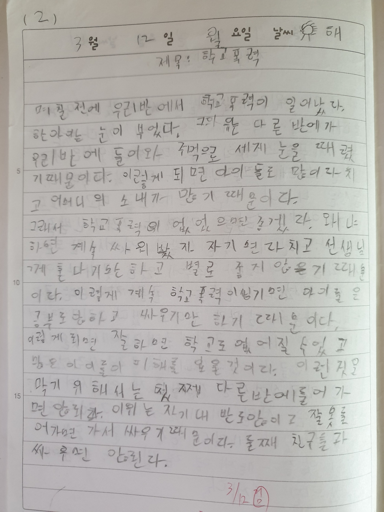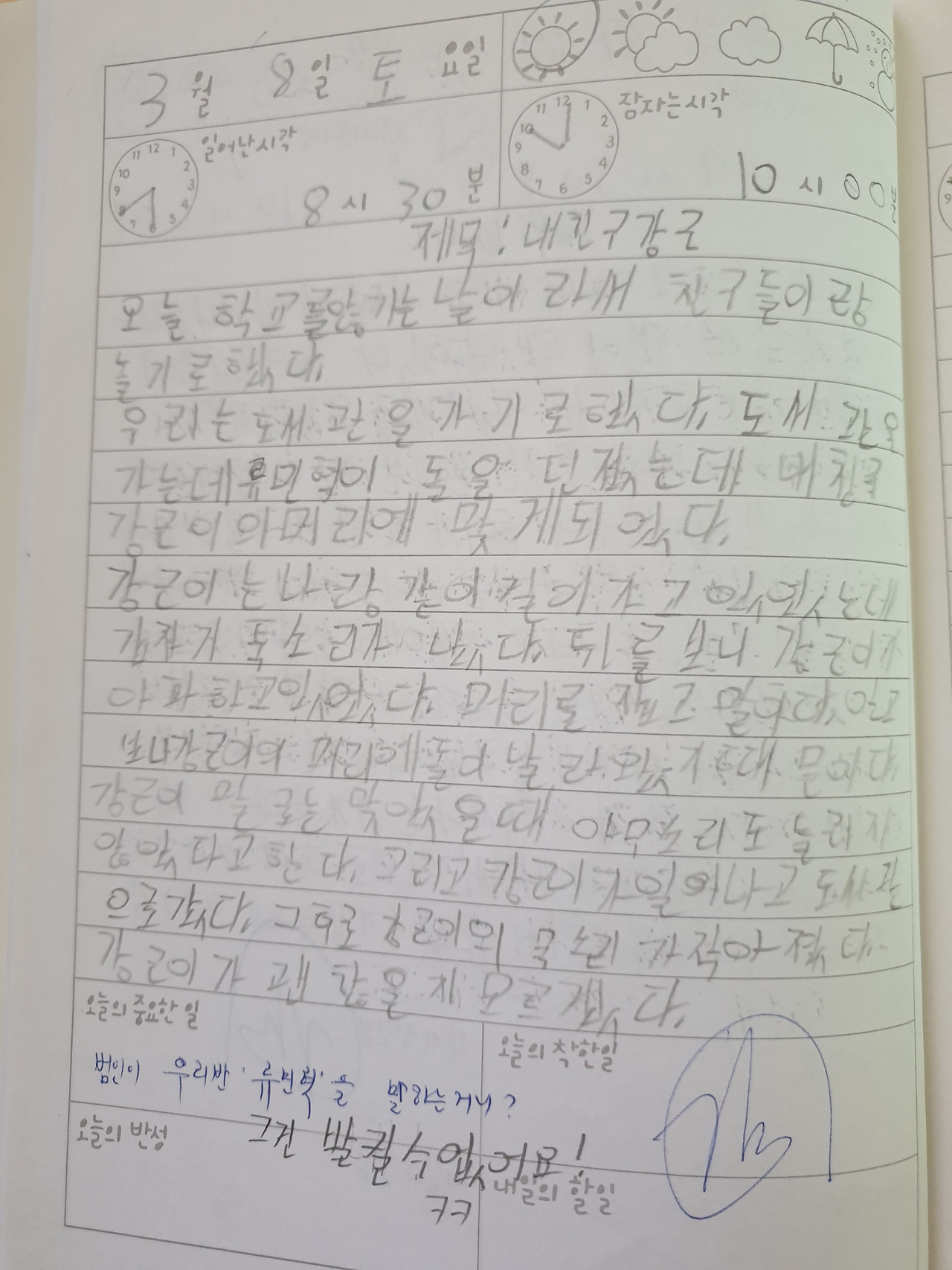 아들왈 그건 밝힐 수 없단다. 범인을 묻는 교사의 생각이 이해가 안된다. 적어도 나에겐.