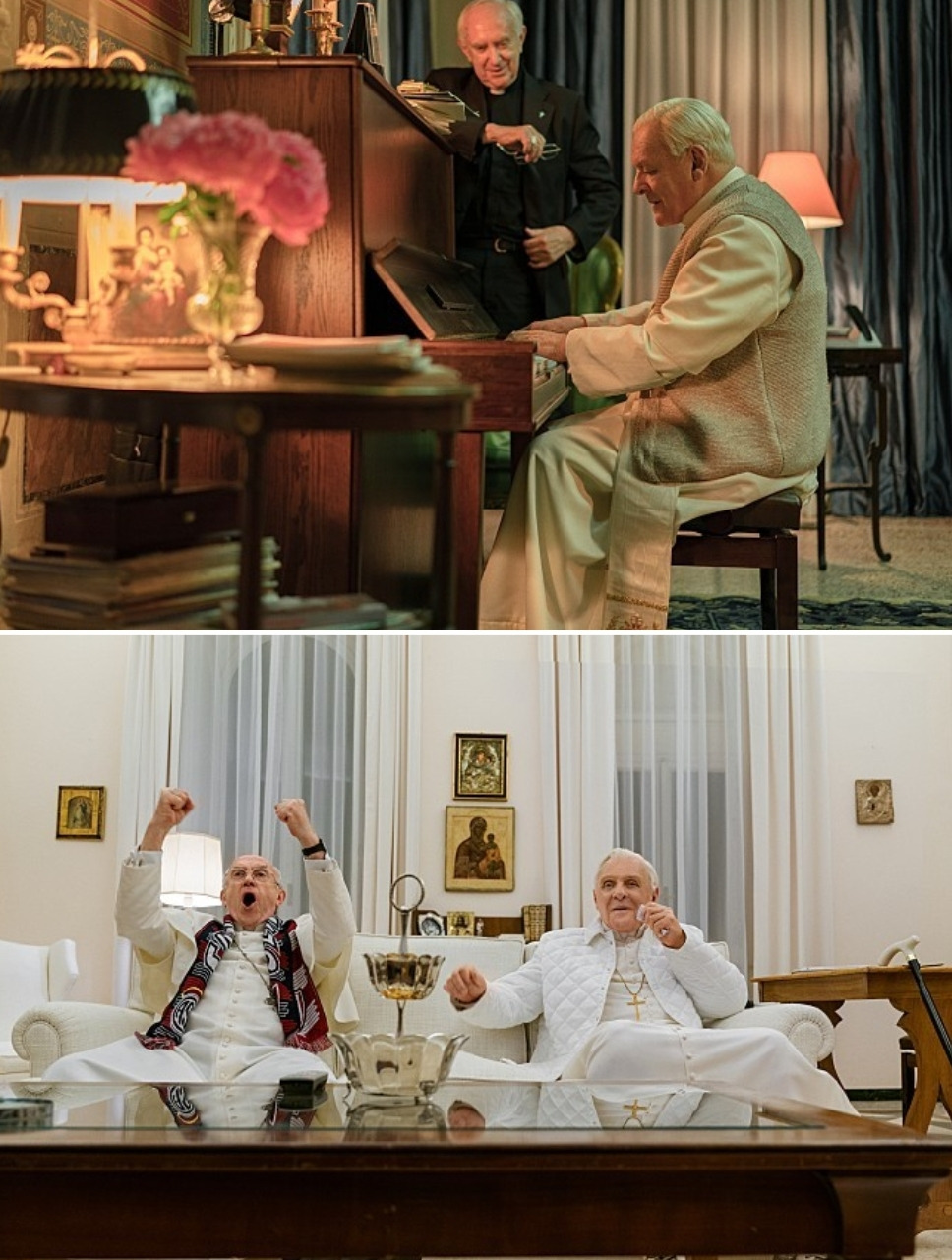 프란체스코 현교황 왼쪽과 영화 속 프란체스카 교황 오른쪽