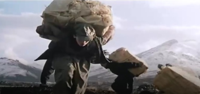 말들은 술을 마신다. 아윱은 집에 남아 있을 동생들을 안아준다 그리고 술에 취한 말들의 몸에는 무거운 타이어를 싣고 아픈 동생을 수술시키기 위해 엎고는 길을 떠난다. 산길은 험하다. 눈보라 또한 세차다. 칠흑 같은 밤이라 앞은 더욱 보이질 않는다. 아윱은 집에 남아 있는 동생들을 위해 그 참을 수 없는 고통을 이겨내야 만 했다. 한참을 걸었을까? 해가 뜨기 시작한다. 그러나 그때 아윱의 나귀가 너무도 술에 취에 걷지를 못한다.