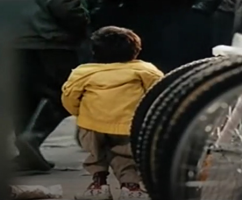몸이 아픈 동생은 거리에서 누나를 기다리고 있다.