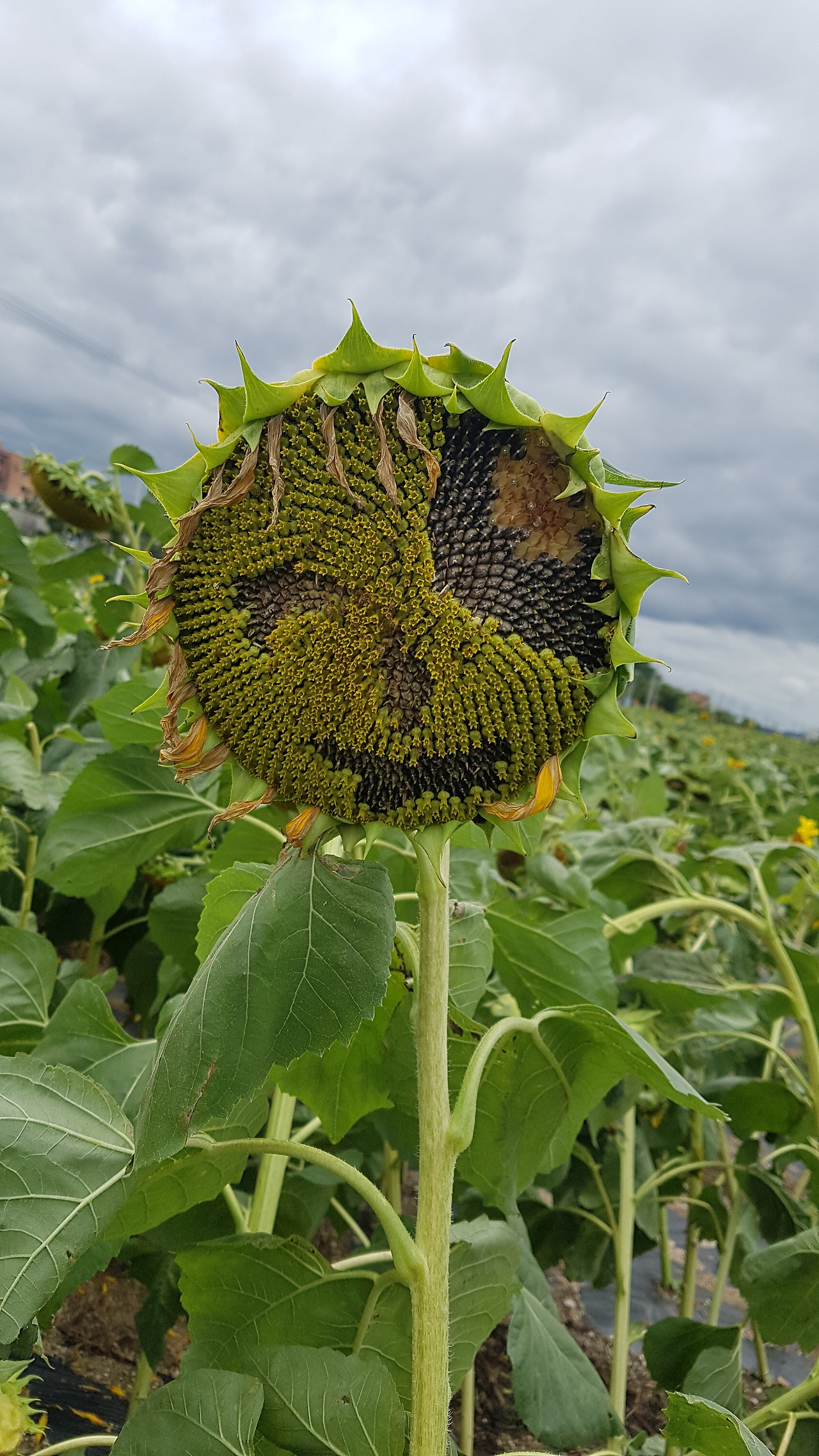 나는 아기들을 데리고 산책을 나서기로 결심했다. 집에서부터 차로 오분 거리. 여름이 떨어지는 흔적이 있는 그곳은 지금 고개 숙인 해바라기가 가득하다. 차에서 내리자마자 쿠키는 오줌을 갈기며 자신의 흔적을 남긴다. 그리고 실외 배변까지 간만의 산책이 어지간히도 좋았나 보다. 나는 아기들에 대한 조금의 죄책감을 덜어낼 수 있었다. 아기들과 걷다 보니 누군가 나를 보며 활짝 웃고 있었다. 나는 다시 고개를 들어 자세히 앞을 보았다. 그곳에는 계절을 이기지 못한 체 꽃잎과 씨가 떨어져 나가고 있는 해바라기가 나를 향해 활짝 웃어주고 있었다. 이제 여름이 지나 세상을 떠나야 할 해바라기가 나를 보고 웃어주고 있는 모습은 마치 오즈의 마법사에 나오는 허수아비 인형과 같 모습이었다. "저는 이제 빈껍데기가 되어 곧 떠나요. 내년 여름에 우리 다시 만날 수 있을까요?"하고 나에게 해바라기가 말을 거는 순간 이런 생각이 스쳤다. 나는 어떤 경우라도 저렇게 웃으며 삶을 받아들일 수 있을까? 하는. 늘 한결같지만은 않은 것이 인간의 감정이다. 늘 출렁이지만 그것을 붙들고 산다는 것이 여간 힘든 일이 아니다. 나의 감정을 붙들고 산다는 것은 때론 나를 드러내지 않는 것이다. 우리 사회는 자신을 드러내는 것을 매우 불편히 여기는 경향이 있다. 때론 자신을 숙이고 살아가야 할 때도 있지만,타인의 시선으로 인해 자신의 색깔 즉 인간 고유의 개성을 일반화 할 필요는 없다고 나는 생각한다. 나는 나로 살아가는 것이 가장 중요한 일이기 때문이다. 여름이 떨어지고 있는 이 순간, 잠깐의 산책 속에서 또 하나의 생각을 거둔 채 환히 웃는 해바라기처럼 아름답고 처절한 자연의 그림을 뒤로하고 우리는 집으로 돌아왔다. 짧은 산책의 시간이었지만, 감자와 쿠키 그리고 나까지 행복한 시간이었다. 그래, 살아있는 생물은 시원한 공기를 마셔줘야 하는 거야. 그렇지 감자야 쿠키야?