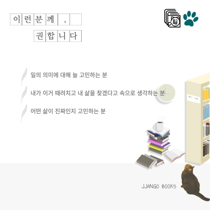 일의 핵심, 전문가, 태도, 시선 등 꽤 다양한 관점에서 일을 이야기하는 저자의 이야기를 따라가다 문득 내 삶을 돌아보았다. 늘 책으로 도망쳤던 마음을 하나씩 꺼내보았다. 조금은 부끄러웠고, 조금은 용기가 났다. 나 어쩌면 꽤 잘 살고 있을지도 모른다.