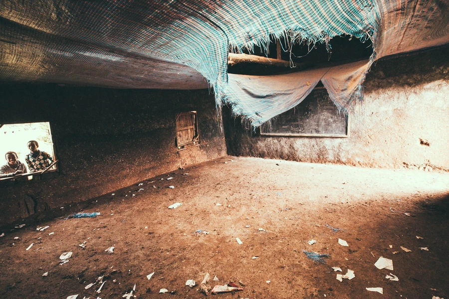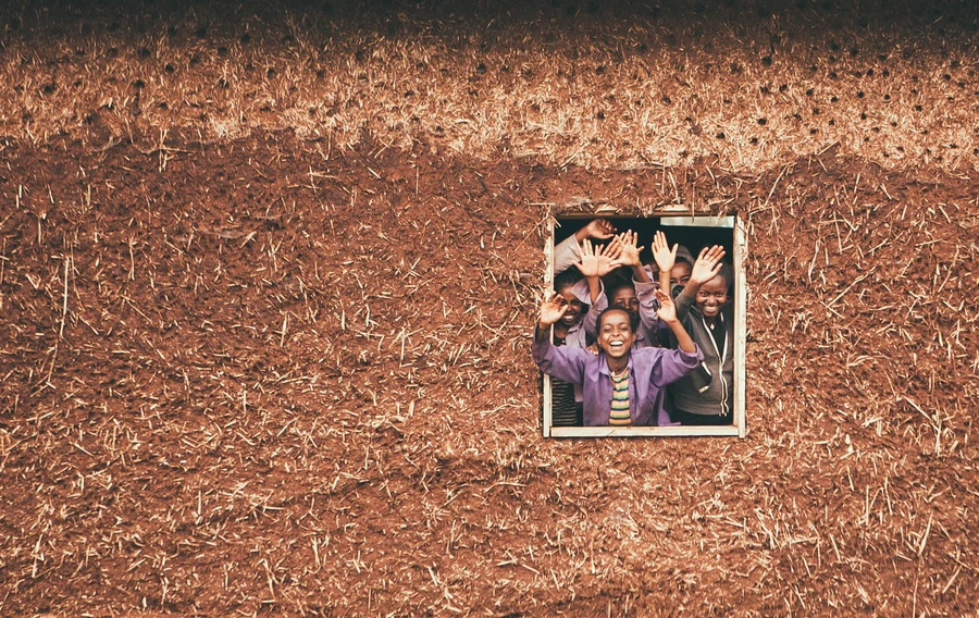 인생 사진, 2017년 저는 에티오피아에서 제 모든 강의자료의 배경이 되는, 이렇게 밝은 아이들을 또 찍을 수 있을까 싶을 정도로 멋진 사진을 건졌습니다. 그런데 그거 아세요? 이 아이들 뒤의 공간은 오른쪽에 있는 텅 빈 교실이었습니다. 저도 제 눈을 의심했지만 이곳은 2017년에 저희가 새 건물을 지어주기 전까지 아이들이 공부하는 학교고, 이 건물은 흙과 동물의 배설물을 섞어 만든 벽입니다. 예전에 조선시대에도 이렇게 벽을 만들었다지요 아마.