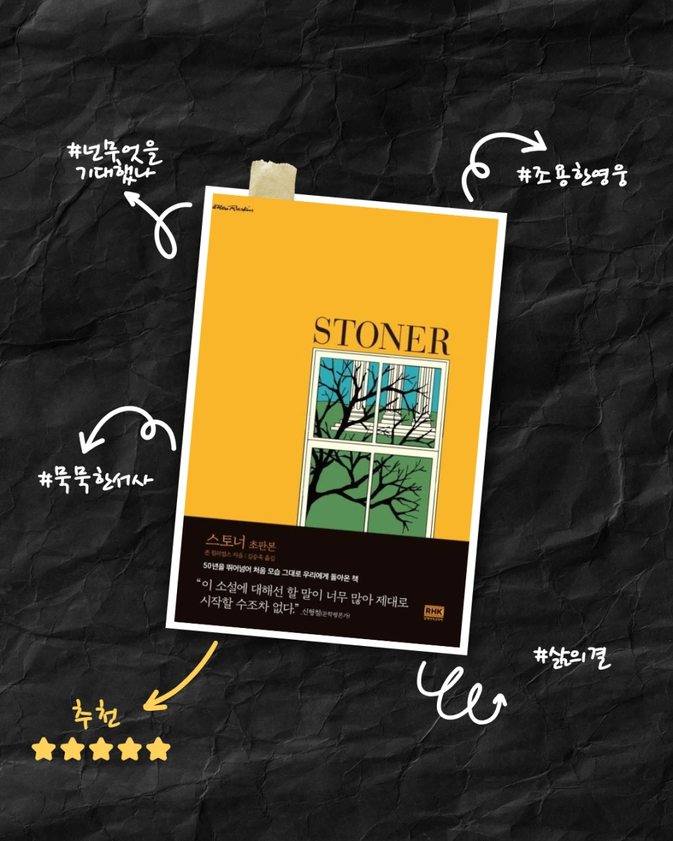 모든 걸 가진 것 같은데 이상하게도 삶이 퍽퍽하게 느껴지는 순간들이 있다. 청년 시절의 열애, 사랑스러운 아이, 안정된 직장. 바깥에서 보기에 아무런 결핍이 없어 보이는 사람이 실제로는 조용히 죽어가고 경우를 우리는 종종 경험한다. <스토너>도 그런 사람이 있다. 무언가 반전이 있기를 바랐던 가슴이 조용히 무너져내리는 느낌이었다.