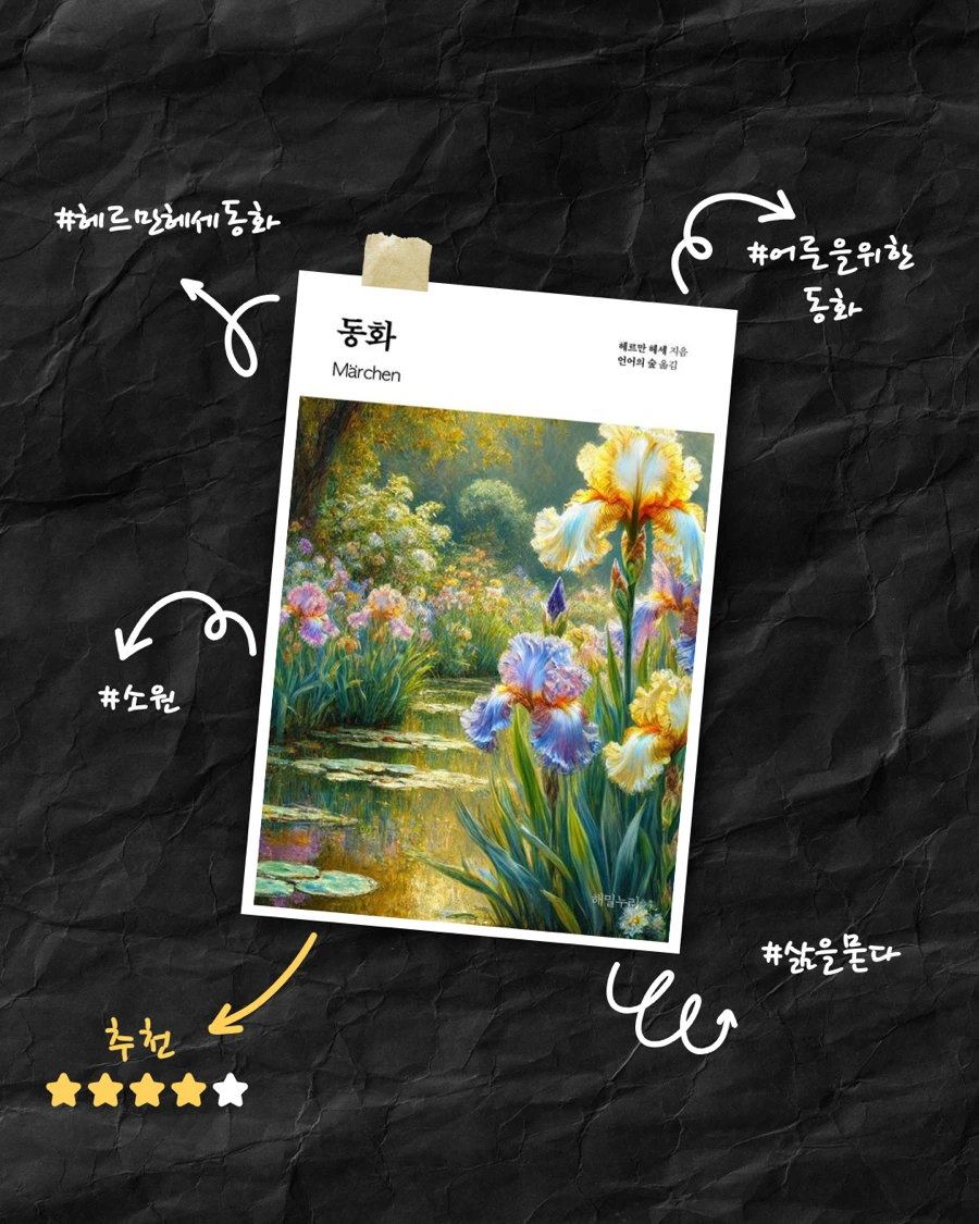 헤르만 헤세가 쓴 동화라니, 그것만으로도 책을 펼칠 이유는 충분했다. 그리고 마지막 장을 덮고 또 한참을 멍했다. 쉬워보이는데 은유로 가득찬 글을 그렇게 만만하지 않았다. 제목처럼 <동화>같은 이야기에 실린 일곱 편의 단편은 사랑, 죽음, 삶, 소원, 예술 등 우리네 삶 이면의 모든 부분을 다루면서도 어떤 교훈을 강요하지 않고 조용히 마음을 두드린다. 짧지만 결코 가볍지 않은 이야기들이다.