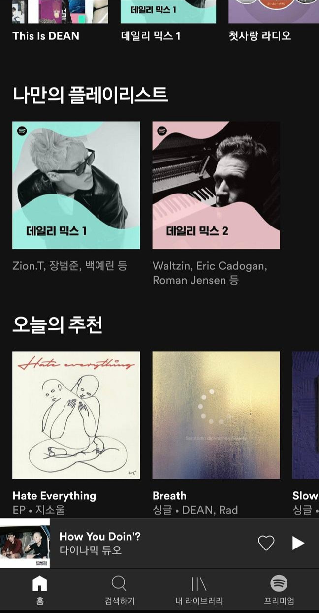 유튜브 알고리즘과 비슷하게, 내가 들었던 음악과 유사한 음악들을 계속해서 추천해 주니까 새로운 아티스트들을 계속 찾아나설 수도 있었고요.