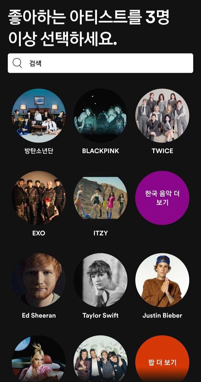 좋아하는 아티스트를 선택하면, 나에게 맞는 추천이 시작된다