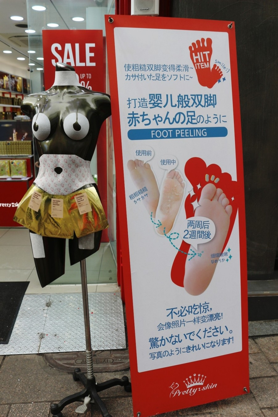 마스크팩전문점은 말그대로 버라이어티했다. 얼굴에 붙이는 팩은 손가락 10개가 부족할정도로 종류가 많았고, 가슴, 배, 엉덩이 등 특수 부위에 붙이는 것도 있었다. 구매량이 많으면 대형사이즈 여행용가방에 팩킹해서 고객의 손에 넘겨줬다. 여행용가방은 당연히 공짜다.