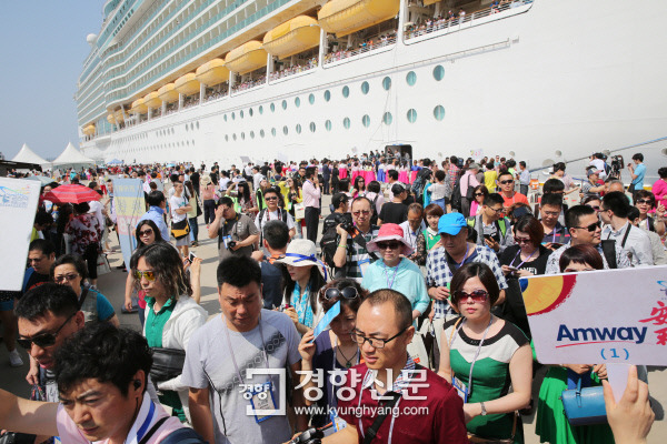 기다리던 크루즈선 취재, 역시 우리의 기대를 저버리지 않았다. 상하이를 출발한 COSTA SERENA가 3,780명을 태우고 제주도로 입항했다. 그들을 태우기 위한 관광버스가 무려 120여대가 대기하였고, 환영을 알리는 한국풍물패의 멋드러진 공연은 어깨를 들썩이게 했다. 중국관광객들이 메르스여파로 경계하는 분위기였지만, 쉽게 볼수 없는 광경이라 우린 쉴틈없이 카메라로 현장을 담았다. 체류시간이 7시간밖에 없다보니 그들은 서둘러 제주항을 빠져나갔다.
