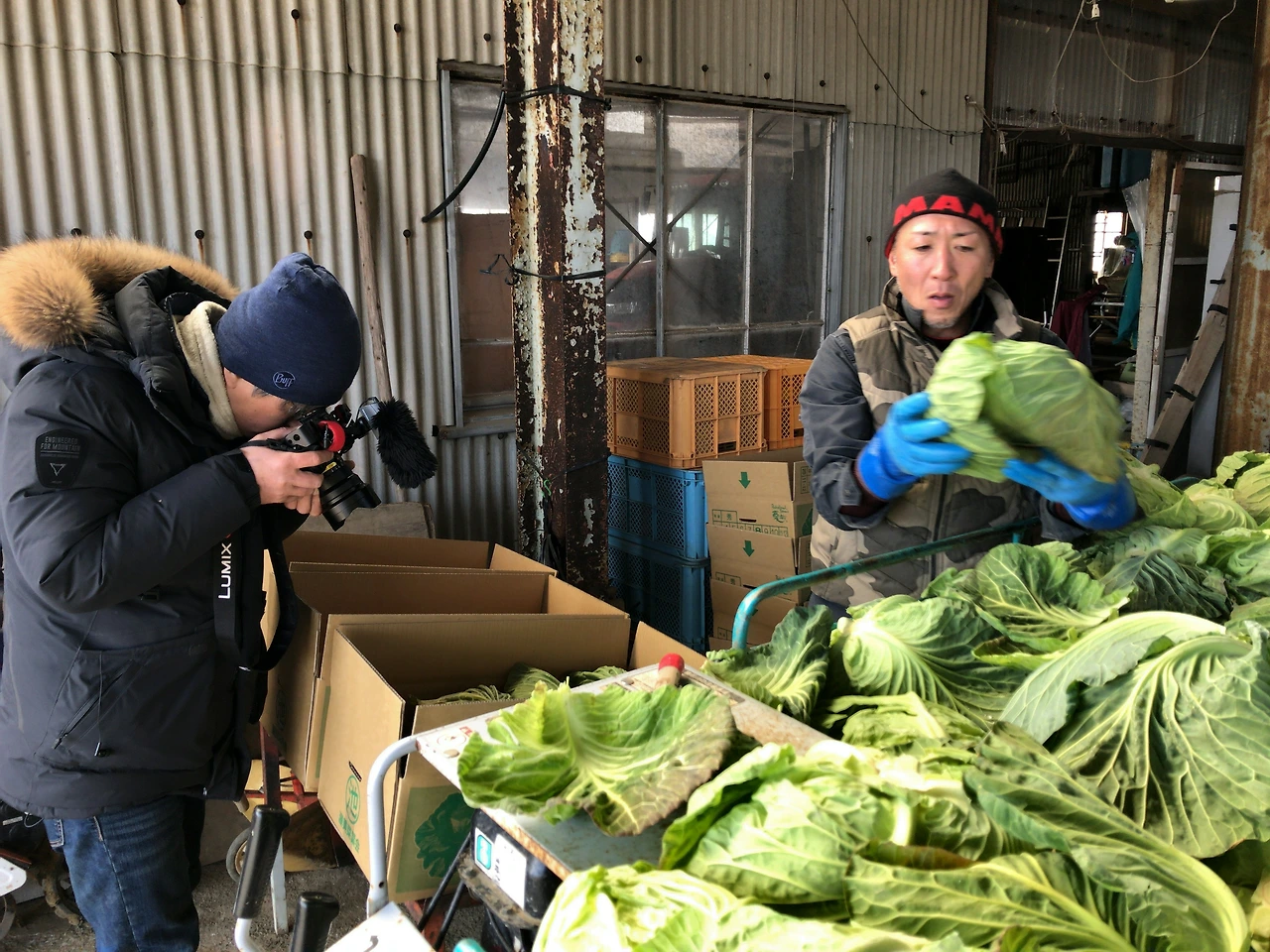 일본에서는 연간 150만톤의 양배추를 생산한다. 생산지 빅3는 아이치현, 군마현, 치바현이다. 봄에는 치바현, 여름에는 해발700-1,400미터의 고원에서 재배되는 군마현, 겨울에는 아이치현이다. 취재가 2월이라 우린 양배추 농가취재를 위해서 아이치현 남부지방의 타하라시(愛知県の田原市)를 방문했다. 수확시즌이라 어렵게 섭외하여 찾아갔는데, 농가 대표인 야마모토상의 첫인상이 까칠할 정도로 강렬해서 살짝 긴장했다. 취재팀은 더 좋은 영상을 촬영하기 위해 출연자에게 동선연출을 부탁하곤 하는데, 그 환경을 만드는건 코디의 역할이다. 난 왠지 그가 비협조적이지 않을까 설러발쳤는데 야마모토형님이 의외로 솔직담백한 상남자였다.