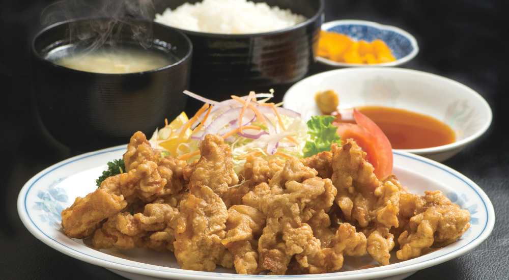 카라아게는 우사시(宇佐市)와 나가츠시(中津市)가 유명하다. 전후 식량난을 대비하기 위해 오이타현에는 많은 양계장이 있었다고 한다. 이 양계를 활용하여 우사시에 있는 중국요리점인 라이라이켄(来々軒)이 브로이라(Broiler양계의 한종류) 판로확대상담을 받고, 점심식사로 카라아게정식을 낸 것이 시초라고 한다. 당시 식량사정이 좋지 않았던 쇼와 30년대(1956년부터) 싸고 맛있는 닭고기를 먹을수 있는 이곳은 정말 대인기였다고 한다.