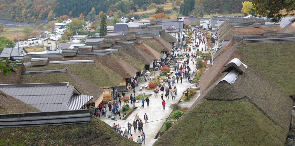 이곳은 에도시대에 아이즈와카마츠(会津若松)와 닛코(日光)를 이어주는 아이즈니시카이도(会津西街道)의 슈쿠바(宿場)였다. 슈큐바는 여행자의 숙박시설, 자동차가 없던 시절 우편업무나 행정업무, 그리고 말이 쉬거나 말을 교체해 타고 갈수 있는 시설을 갖춰놓은 곳이다. 근대화에 접어들면서 당시 모습이 사라지기 시작했지만, 보존운동으로 1981년 중요전통건조물보존지구로 선정되어 현재는 관광객으로 발길이 끊이지 않고 있다.