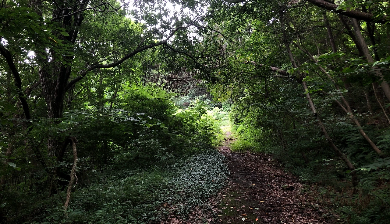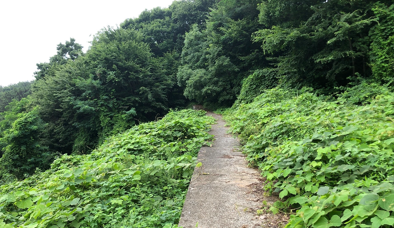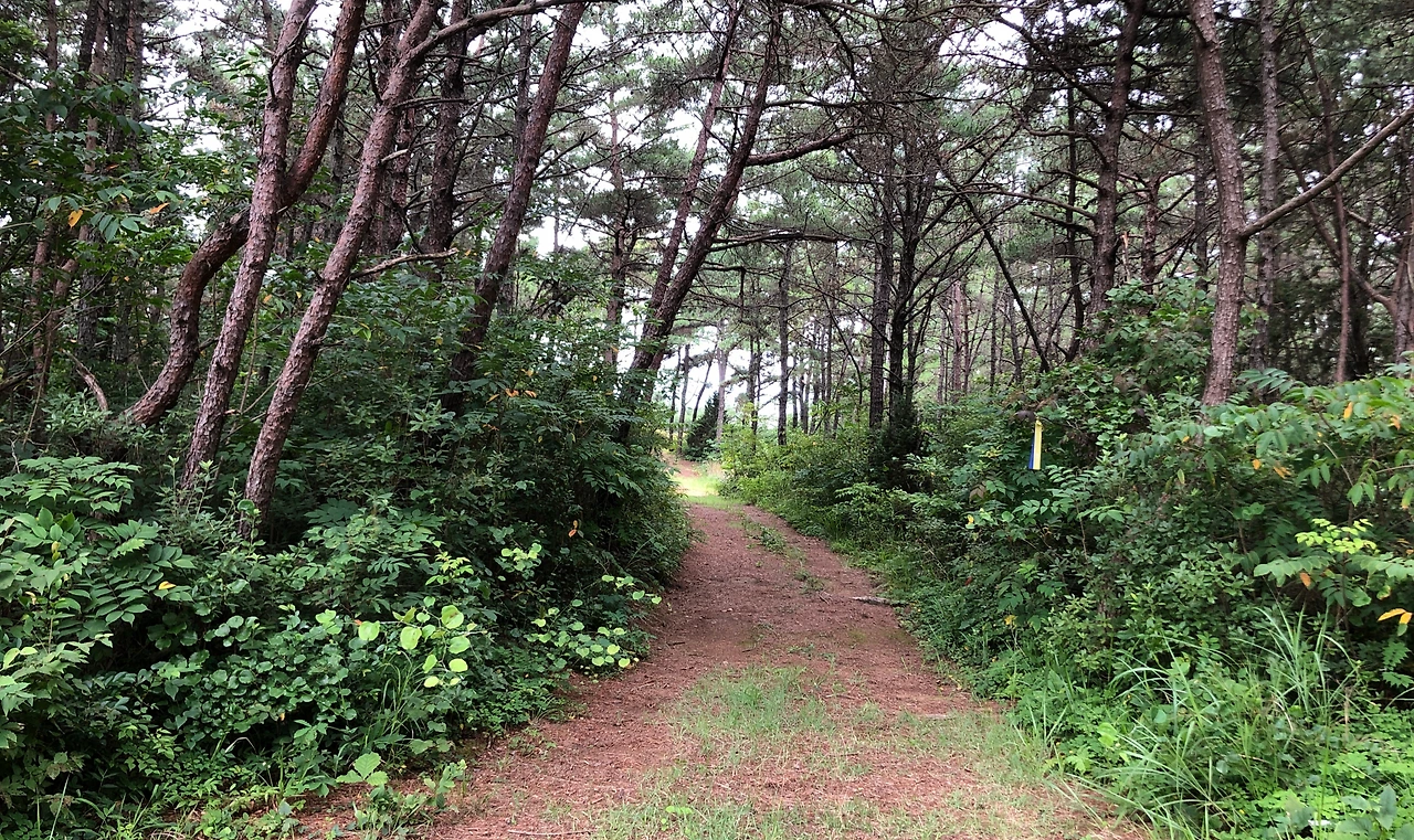 선두마을을 지나면 잠시 숲길이 시작되면서 작은 언덕을 하나 넘는데, 초입에 경사가 가파른 할딱 고개를 올라서 평이한 숲길이 잠시 이어진다. (3:54, 14.9km)