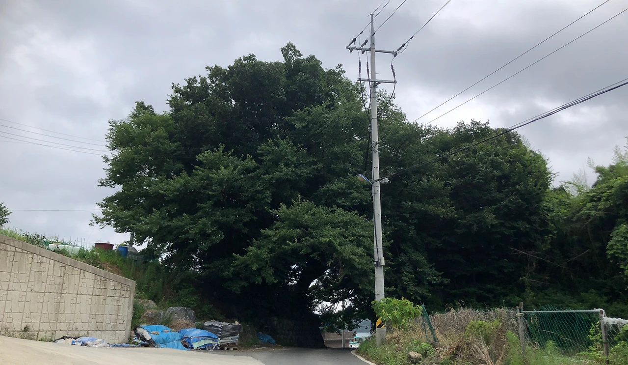 장기마을의 끝자락에서 엄청난 크기의 당수나무 두 그루를 만났다. (3:30, 13.5km)