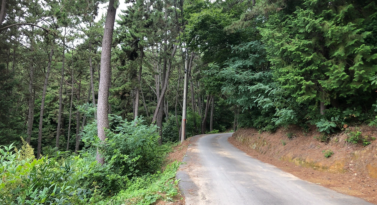숲길과 임도로 이어지던 길은 약 2km 정도로 끝이 나고, 다시 마을에서 시작되는 2차선 도로가 시작되면서 차도를 걷게 되지만 차량 통행량이 그다지 많지 않아서 불편하지는 않았다. (1:28, 5.7km)