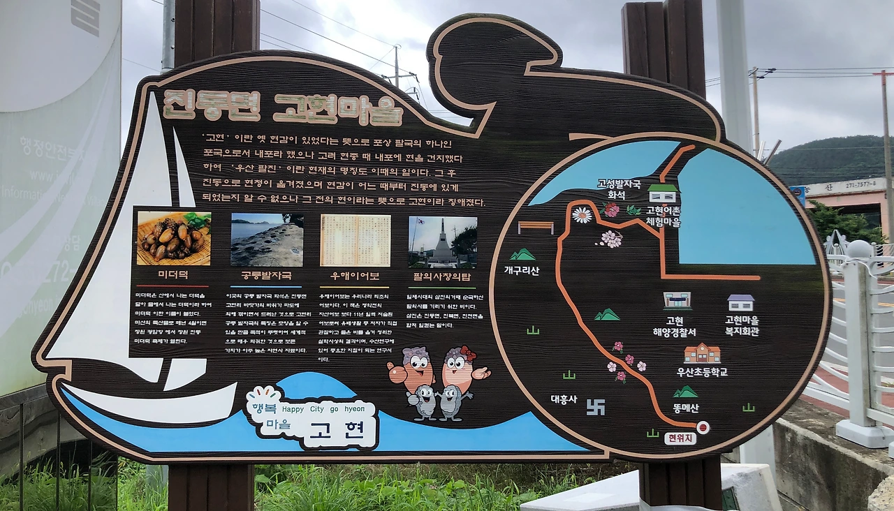 고현어촌체험마을에서는 공룡 발자국 화석도 보고, 어촌 체험을 할 수 있는 시설도 챙겨 보면 좋았는데, 평일에 관광 시즌이 되지 않아서인지 마을 전체가 조용한 편이어서 그냥 지나쳤다. 미더덕만 특화된 판매장이 있을 정도로 고현마을은 미더덕이 특산물이라는 것도 처음 알았다.