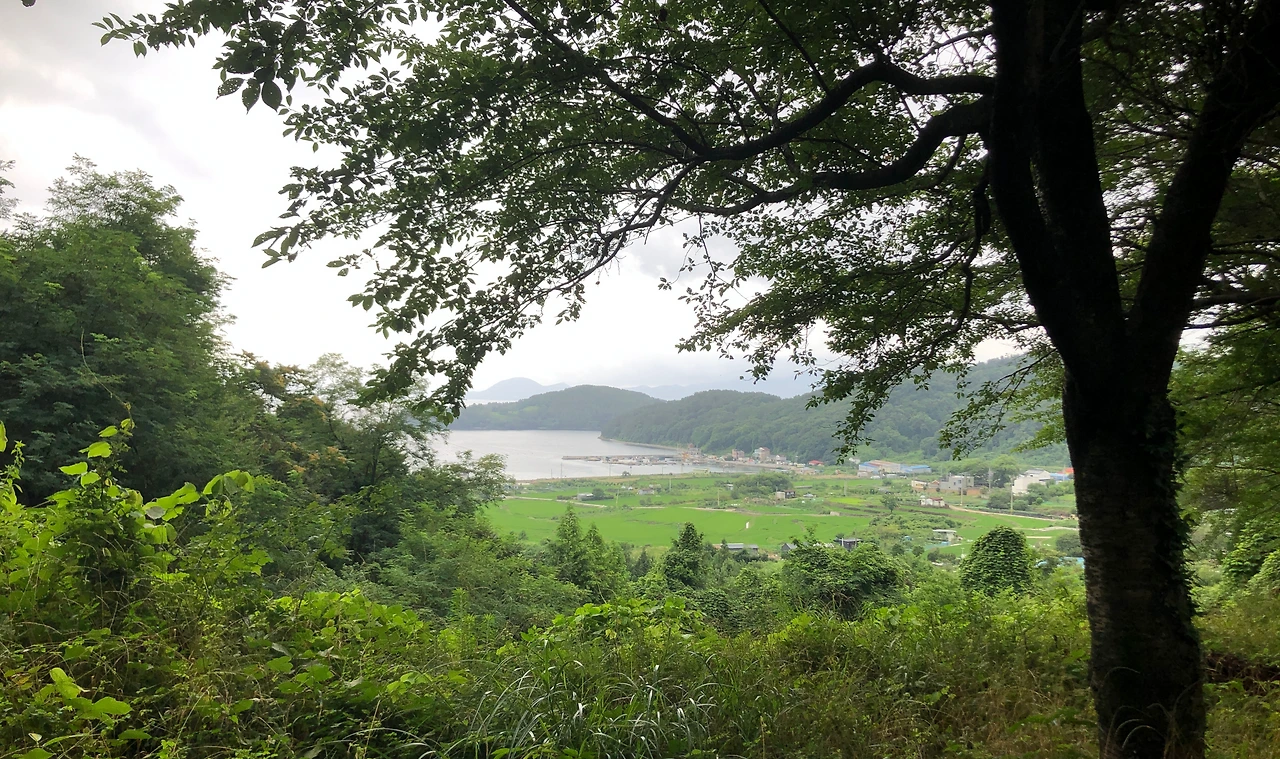 제말장군묘 입구를 지나치면 곧바로 바다로 향하는 농로가 좌측에 나온다. 바다를 향해 농로와 주택 사이로 하향하면서 걷다 보면 바다와 만나게 된다. (0:51, 3.3km)