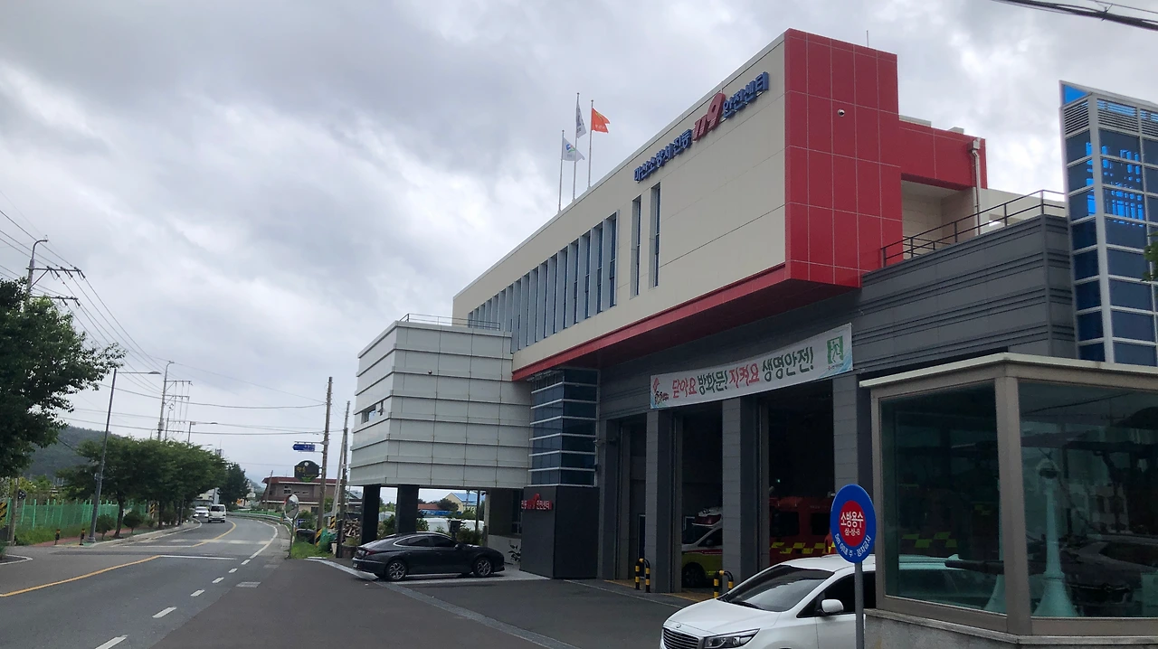 힐링로드의 마지막에는 진동119안전센터가 있고 여기서 길이 왼편으로 이어지면서 진동면 소재지의 안쪽으로 접어든다. (2:24 8.9km)