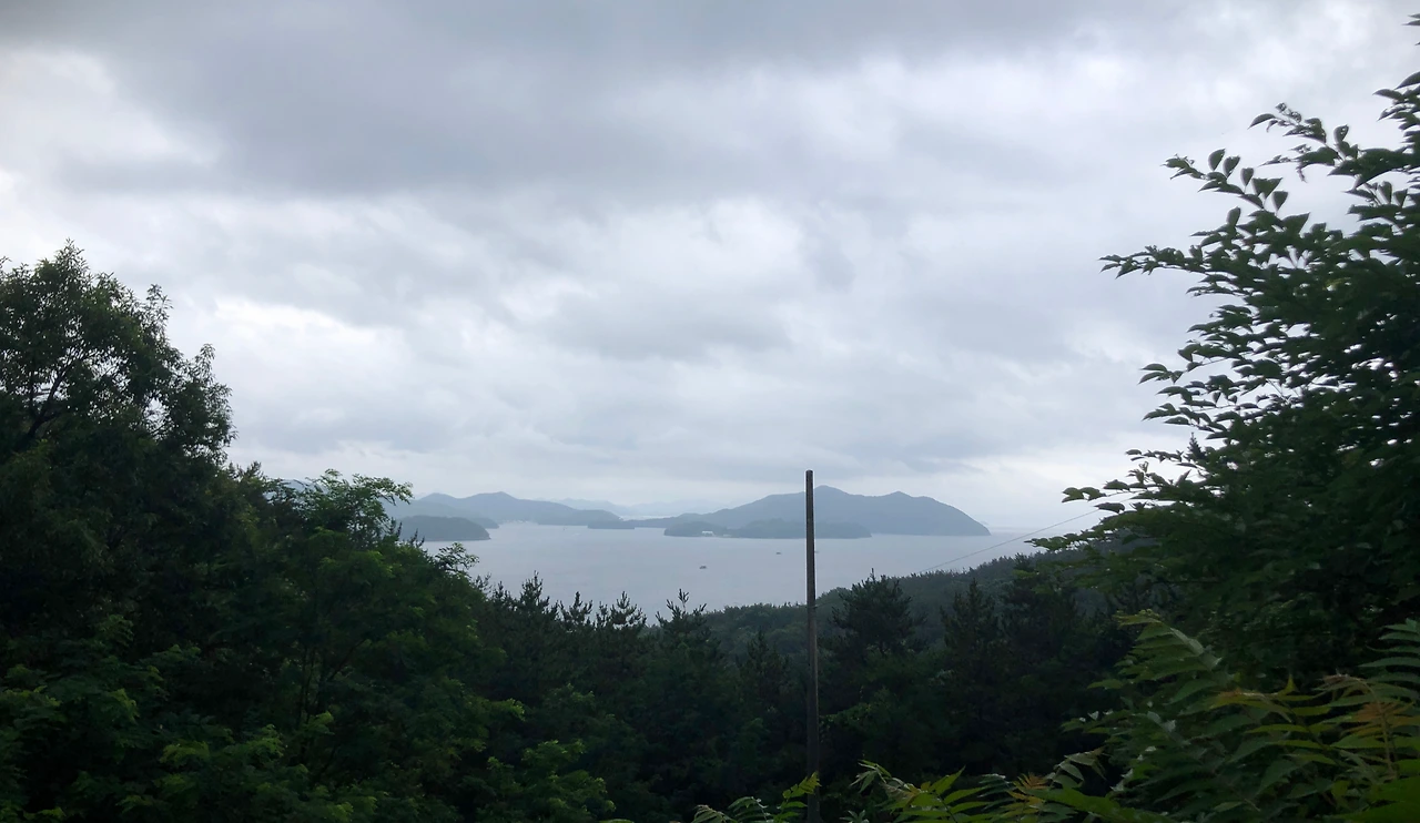 오르막은 대략 1km를 지나는 지점에서 경사가 높아져 600m 정도를 올라가야 된다. 그 와중에 길가에 심긴 수국들이 엄청 싱싱하다는 생각... 저 정도로 이파리가 진한 녹색인 수국은 쉽게 볼 수 없다. 길가에 수국들을 심어 놓는 것도 남해에서 보게 되는 풍경 중의 하나이다.