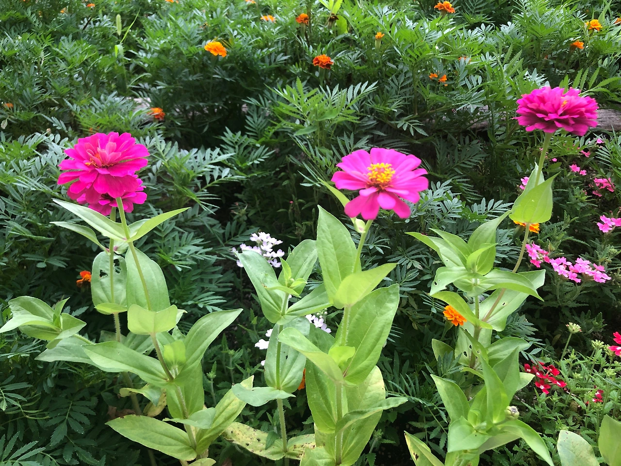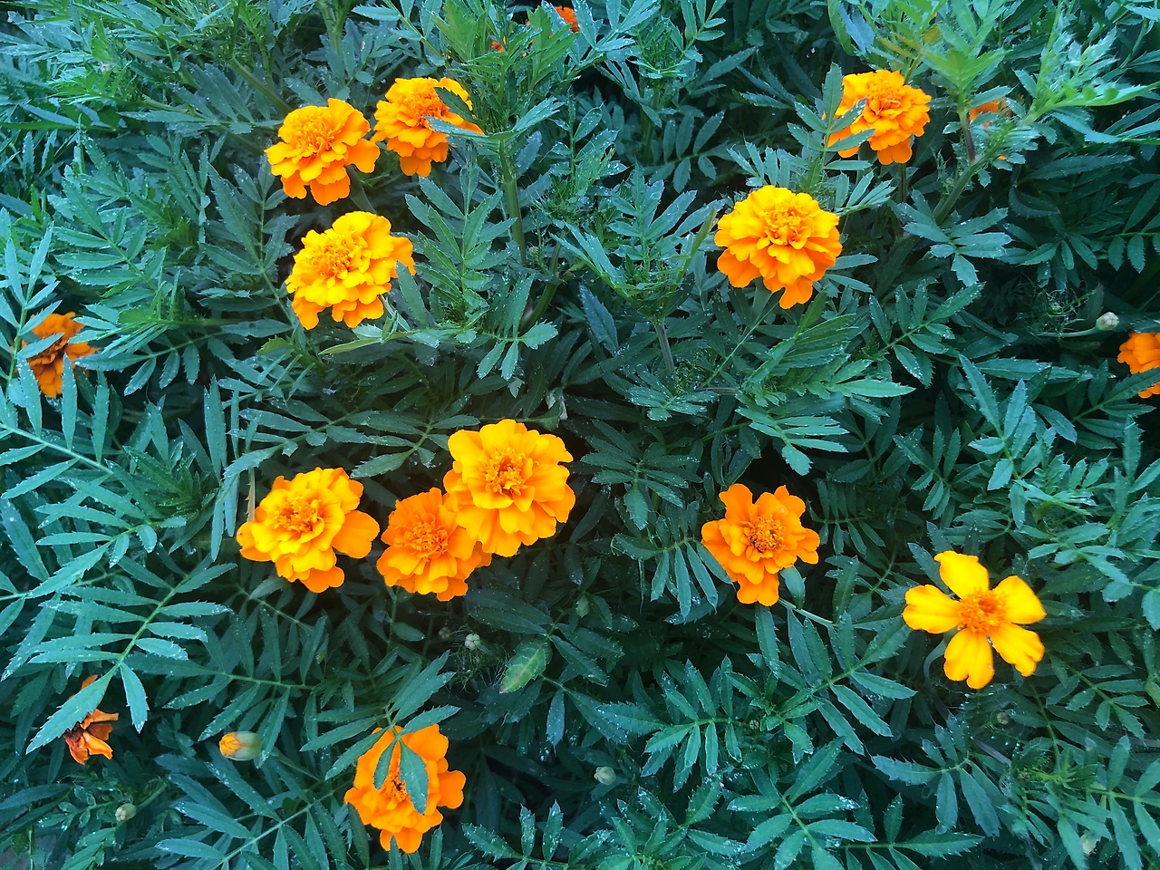 해마다 마당에 가득하게 올라오던 매리골드 싹들을 올해는 제법 솎아내면서 정리했고, 나눔을 많이 했다. 무엇보다도 화단에 빽빽하게 올라오던 것들을 잘 정리해 주니 이제 꽃들이 본격적으로 피기 시작한다. 매리골드는 지금부터 11월까지 계속 성장을 하면서 꽃들을 피워낼 것이다. 간격을 넓게 두고 키우니 꽃들의 크기도 제법 커진다.