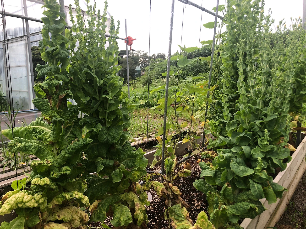 역시 7월에 심어도 잘 자란다는, 따뜻한 나라의 작물이다. 루꼴라와 함께 파종을 했고 발아도 잘 되었다. 한 포기의 크기가 매우 크게 자라기에 비닐하우스 바깥, 적당힌 곳에 심어 보았다. 잘 자란다. 심지어 장마가 와서 물바다가 된 가운데에서도 아직 잘 살아남고 있다.