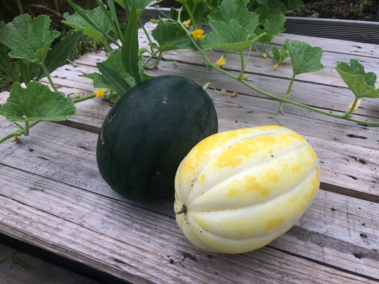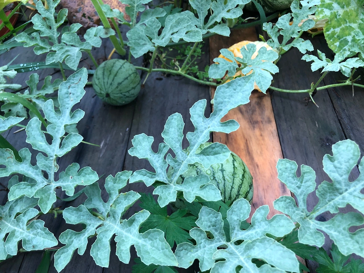 그 참외들이 밭에 떨어져 씨앗들이 남았던 모양이다. 올해 모종 몇 포기 산 것 외에도 참외싹들이 많이 올라왔지. 모종을 심은 것들이 영 시들시들하고 제대로 뿌리를 내리지 못하고 있던 차였다. 텃밭 한편에 어느새 엔가 와글와글 올라와 있던 이름 모를 싹들이 참외 싹이라는 것을 알게 된 것은 줄기가 제법 자라서 한 뼘 정도는 된 후였다.