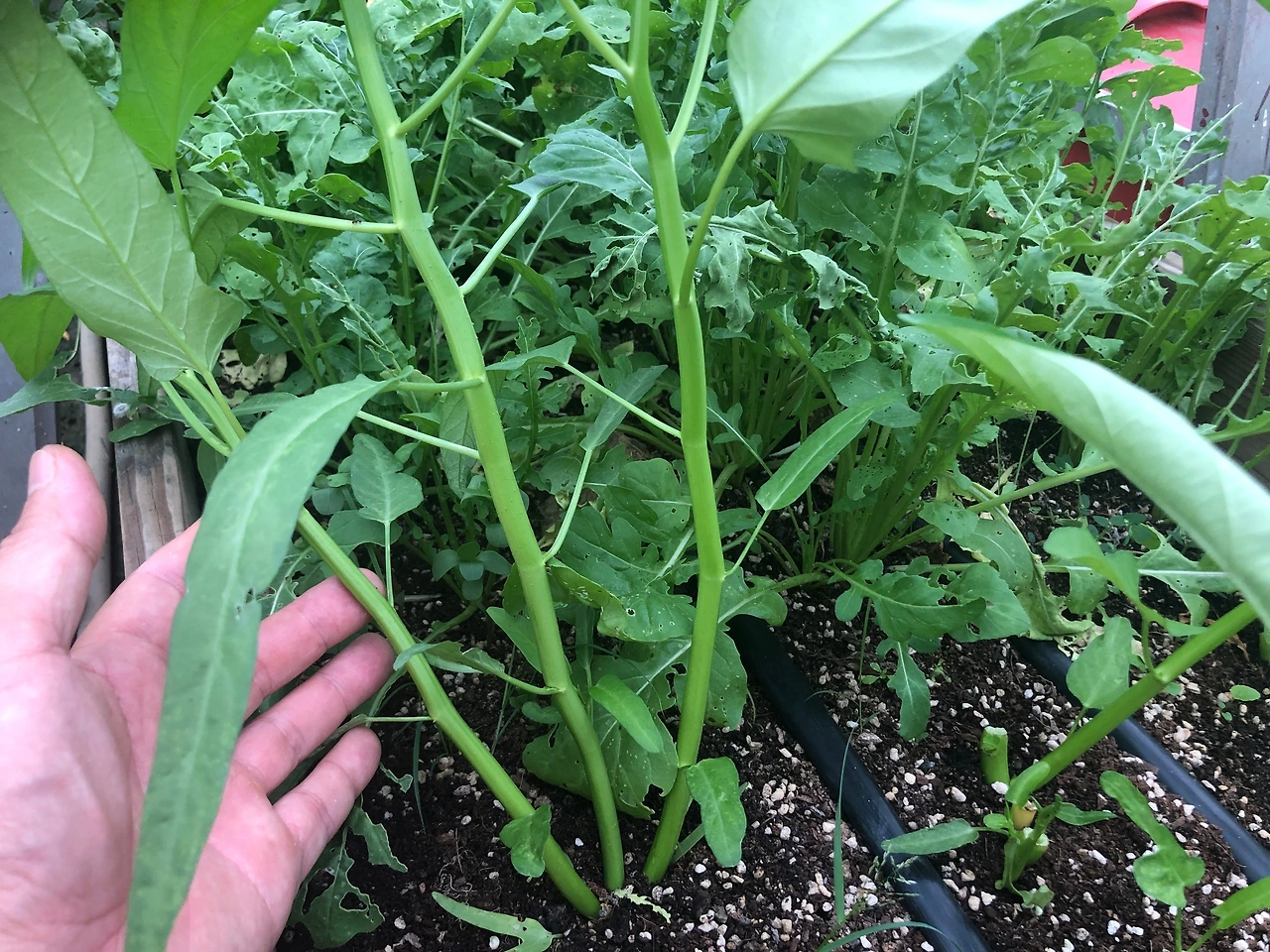 공심채 맛을 처음 봤다. 무슨 맛인지 아직은 잘 모르겠지만 아삭아삭한 식감이 좋다. 동남아에서 잘 자라는 식물인지라 여름이 오는 7월에 발아도 잘하고 정식하고 난 후의 성장세도 좋다. 벌레의 피해가 그리 크지는 않지만 이것도 바깥에다 심어봐야겠다.