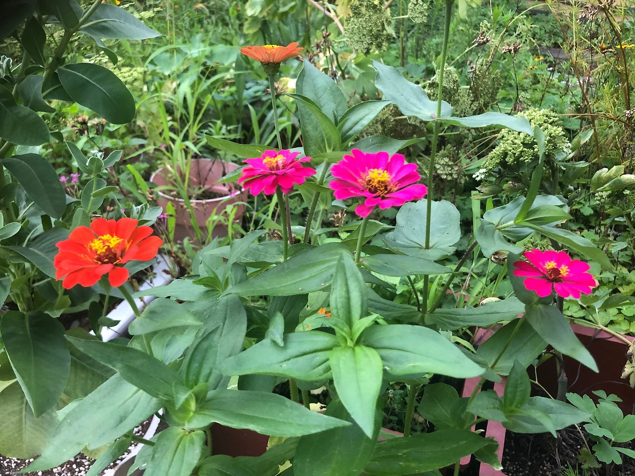 해마다 마당에서 스스로 올라오는 백일홍들이 항상 있었다. 그것들이 하나둘씩 싹이 올라오고 있을 무렵에 뒷골목에 사시는 꽃 키우는 아주머니 한 분이 백일홍 모종을 한가득 가져다주신다. 파종을 했는데 너무 많이 올라와서 어차피 솎아내는 것이라면서 말이다. 덕분에 작년보다 좀 더 풍성하고 체계적으로 백일홍들을 화단에 배치할 수 있었다. 이제 꽃들이 본격적으로 피기 시작한다.