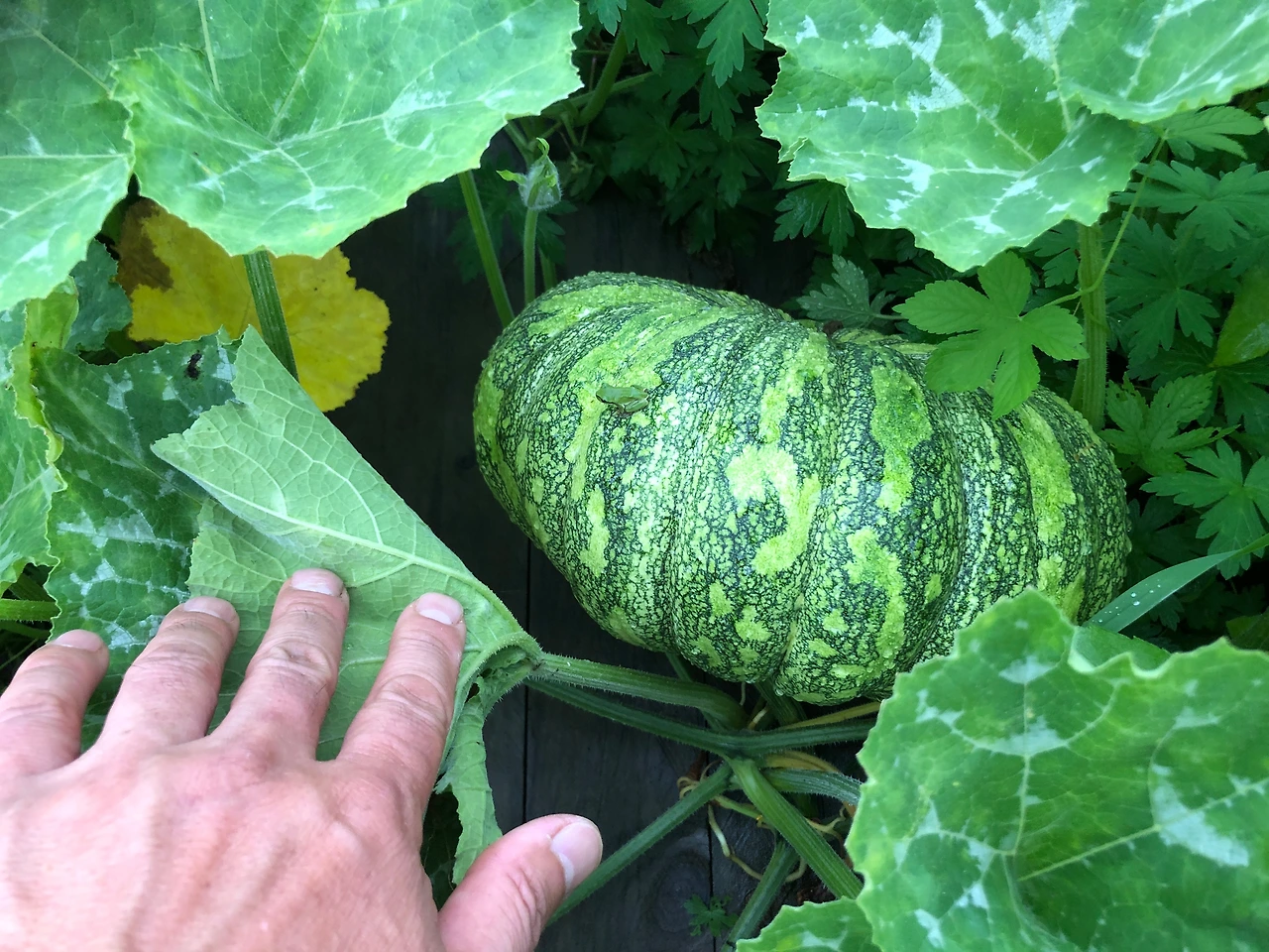 호박은 빠른 성장 속도는 언제 봐도 놀랍다. 하루 동안 성장을 하는 차이가 눈에 확 뜨일 정도로 폭풍 성장을 한다. (호박의 초록색에 가려진 작은 청개구리 한 마리 보이시나요?)