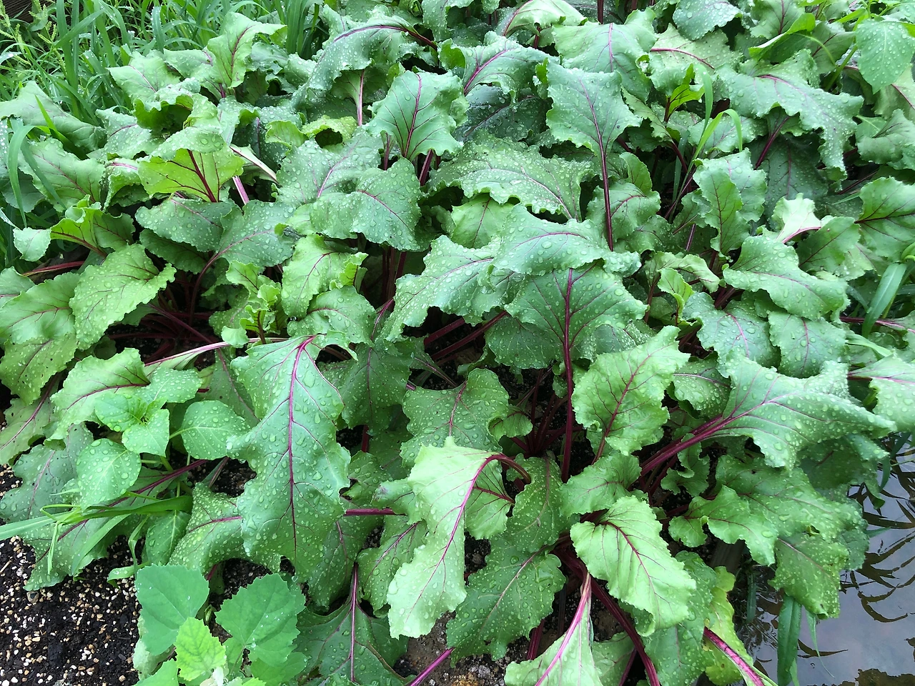 비트도 비닐하우스 안과 밖에 나누어서 심어 보았는데 역시 바깥에서 비 맞으며 햇빛을 맞은 것이 훨씬 더 잘 자란다. 그래서 바깥에서 무럭무럭 자라는 것은 비트 뿌리를 먹고, 안에서 이파리 예쁘게 자라는 것은 이파리를 먹는 용도로 나누기로 했다.