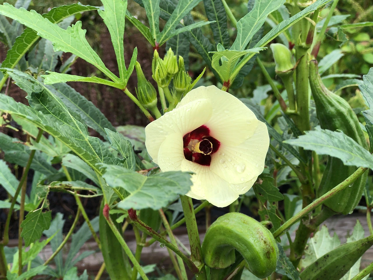 오크라는 꽃이 지고 결실을 한 후에 며칠 지나지 않아서 열매가 딱딱해진다. 그러다보니 적당한 식감의 오크라를 얻을 수 있는 수확 시기는 자주 놓치기도 하지만, 아직 오크라의 맛에 매력을 느끼지 못해서 그냥 자라는 모습만 지켜본다. 오크라 꽃은 금화규와 자주 혼동이 된다. 지나가는 분들이 금화규라고 착각을 하기도 한다.