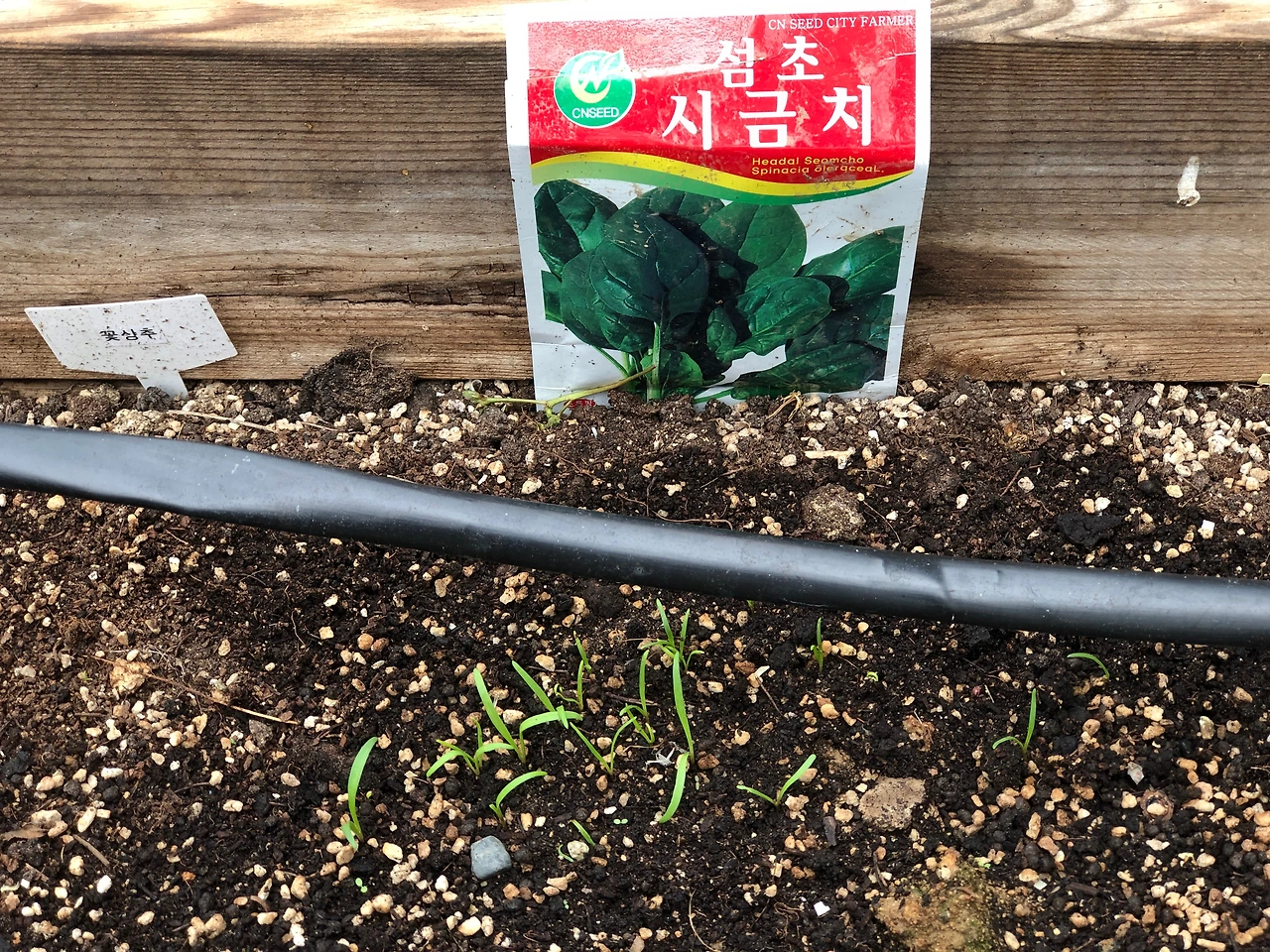 9월 25일에 비닐하우스 틀밭에 파종한 시금치 / 25. 10. 3.