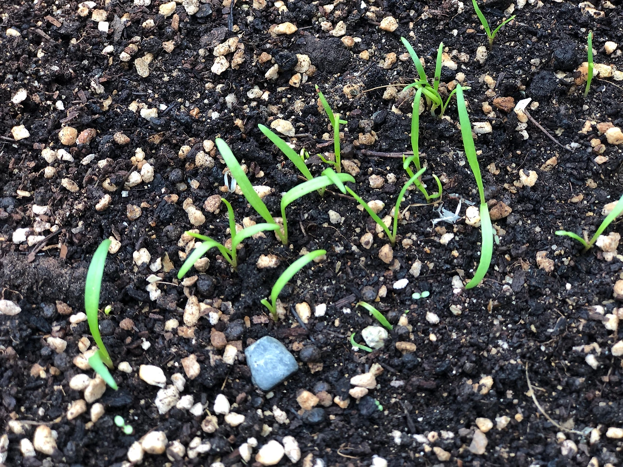 그동안 시금치는 발아율이 엄청 낮았었는데, 그런 내 푸념을 듣고 발아가 잘 되는 씨앗이라고 추천을 받았다면 지인이 건네준 시금치 씨앗을 속는 셈 치고 뿌려 보았더니 지금까지의 어느 것보다도 발아율이 높다. 시금치의 떡잎은 우리가 흔히 생각하는 모습과 조금 다르다. 떡잎이 마치 부실한 바랭이처럼 잡초 같은 모양으로 길쭉하게 올라온다.