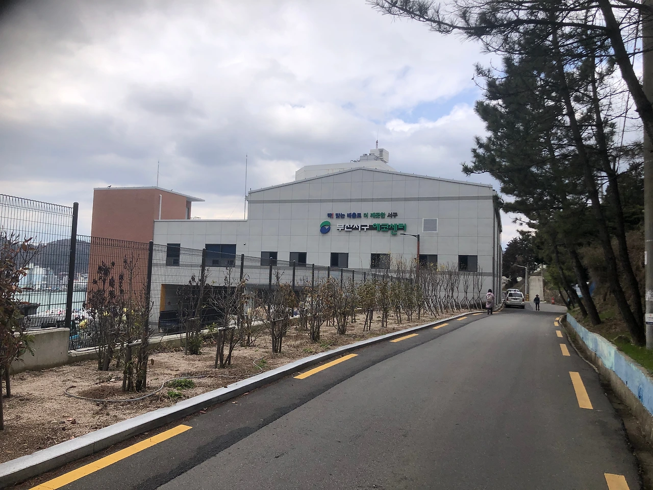 임도는 한적하고 조용하지만, 이따금씩 차들이 왕래를 하는 탓에 신경이 조금 쓰인다. 시멘트로 포장된 임도는 대로변의 차도를 걷는 것 다음으로 재미가 없는 길이다. 임도를 걷다 보니 부산 서구 에코센터를 지나친다. (15.2km, 13:23)