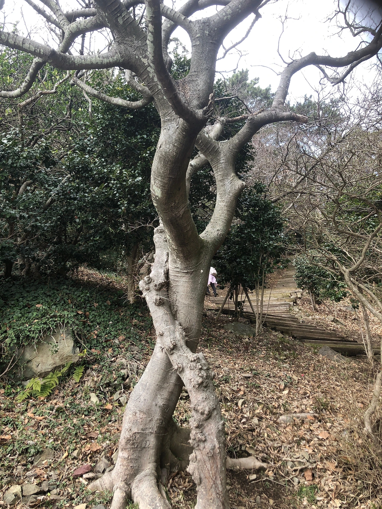 동백이 자생하는 숲길이 이어진다. 동백은 피고 있는지, 지고 있는지 꽃이 몇 송이 보이질 않는다. 포구나무 쉼터에는 아름드리가 여러 갈레로 펼쳐진 팽나무가 있다. 포구나무는 '팽나무'를 말한다. 굵은 아름드리가 멋진 포구나무에서 오랜 세월의 흔적을 느끼게 된다.