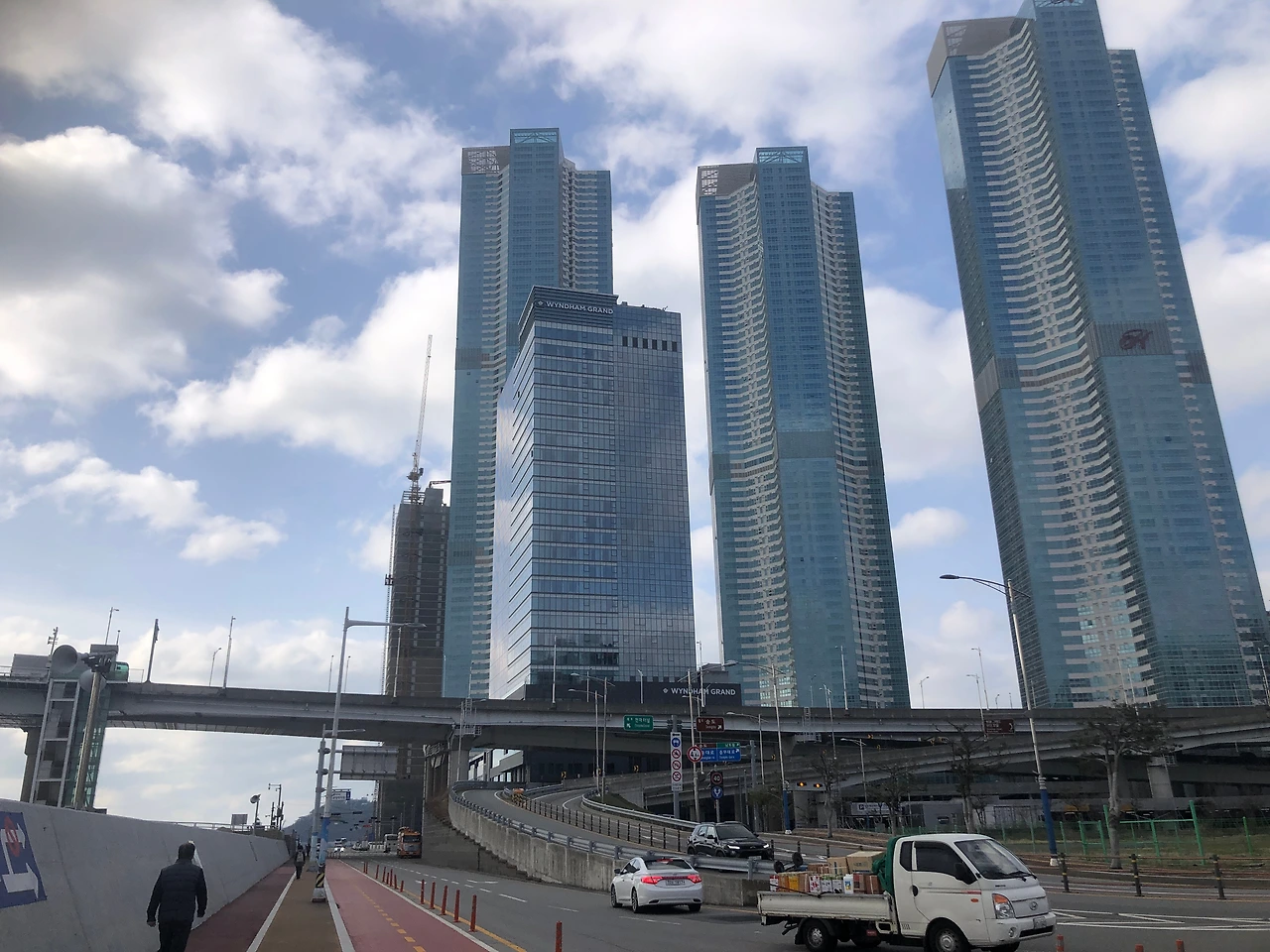 충무동새벽시장에서 충무대로를 따라 대략 1.3km 정도를 걷다가 남항체육공원 방향으로 좌회전한다. 여기서 좌회전하기 전에 우측으로 보이는 대림비치아파트 위쪽에 故 이태석 신부 생가와 기념관이 있다. 방파제를 따라 인도가 이어지고 남항대교 아래를 통과한다(6.0km, 9:40). 앞쪽에 고층의 아파트들이 우뚝 솟아 있다. 경관 좋은 해수욕장마다 들어서는 마천루들... 이걸 보기 좋다고 생각하는 이들도 많지만, 내 눈엔 흉물로 보인다. 꼭 이래야만 될까...